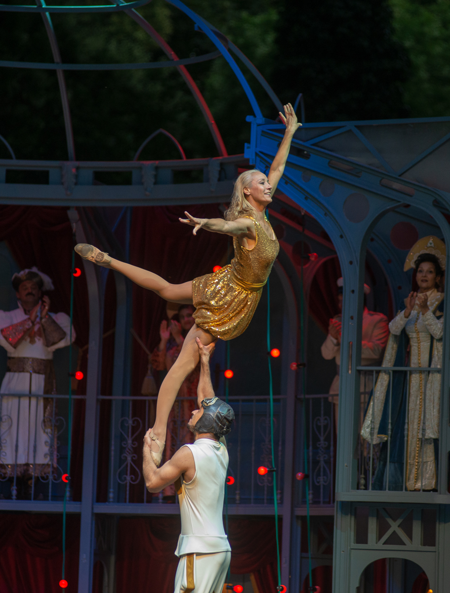Éppen ezért visszagondolva teljesen magától értetődőnek tűnik, hogy A cirkuszhercegnő igazi artistaszámokat vonultasson fel. Korábban ezek a számok a színfalak mögött történtek – egyszer sem tárult az egyszeri közönség szeme elé, a színészek is csupán hivatkoztak rájuk. Most azonban a nézők valódi cirkuszi produkciókat láthatnak, amelyek úgy illeszkednek az operett történetébe, mintha mindig is a részei lettek volna. Nem csak színesebbé teszik a darabot, de a történetet is előre lendítik és erőteljesebbé varázsolják.