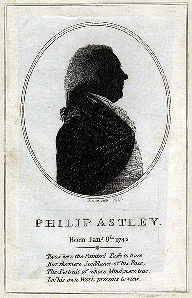 Philip Astley 1742. január 8-án született az angliai Newcastle-under-Lyme-ban. A fiatal Astley nyolcéves korától apja asztalosműhelyében dolgozott, lázadó kamaszként azonban más utat választott. A hadsereg lovasait akkoriban komoly tisztelet övezte, így Astley 17 évesen csatlakozott a brit hadsereghez, ahol az újonnan beszerzett lovak szolgálatra való felkészítését kapta meg feladatául. Itt szerezte meg a mutatványos karrierje során felhasznált tudásának alapjait. Végigharcolta a hétéves háborút, több vakmerő hőstett is fűződik a nevéhez.