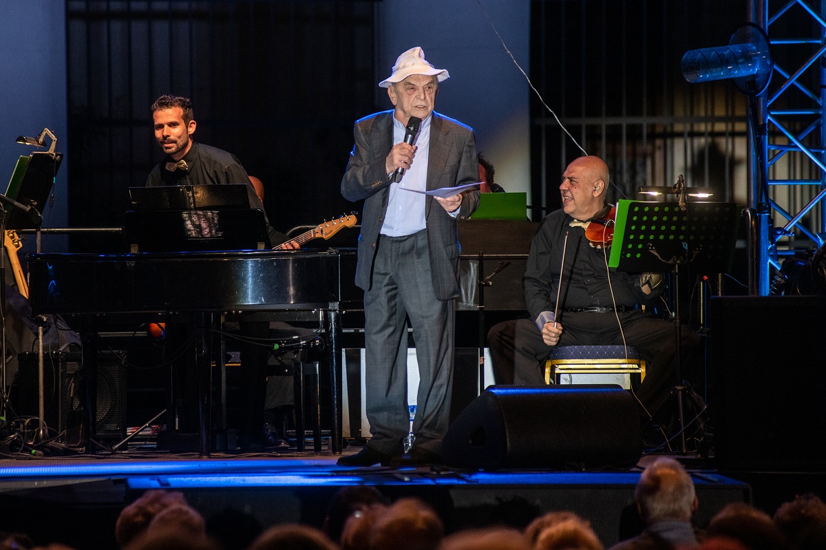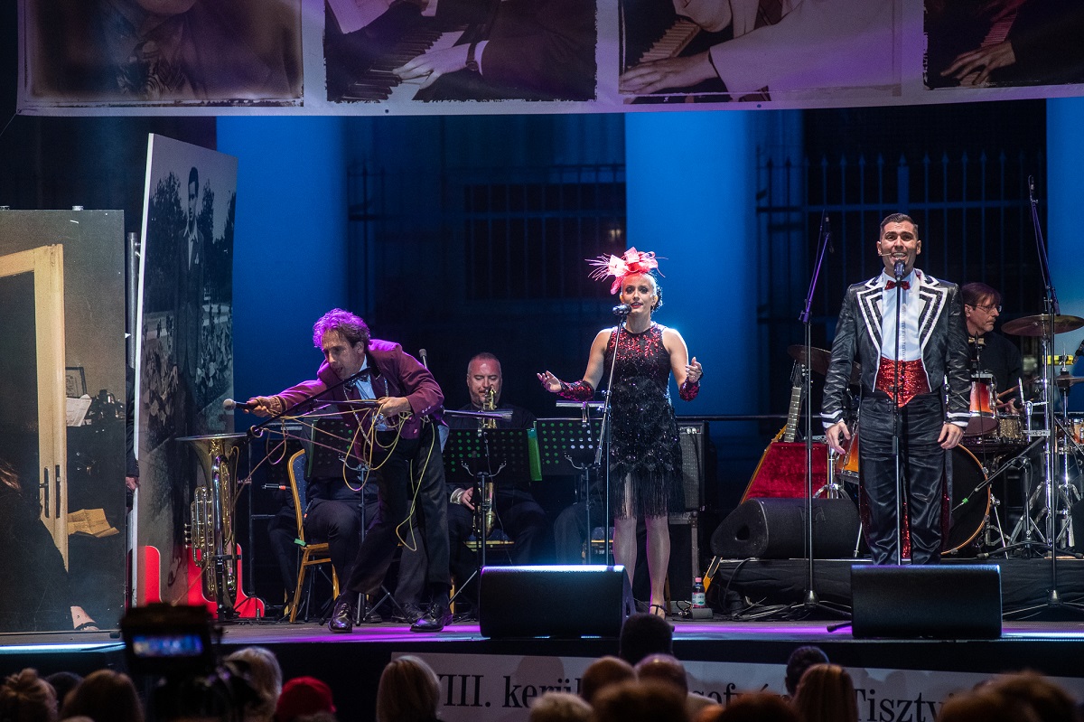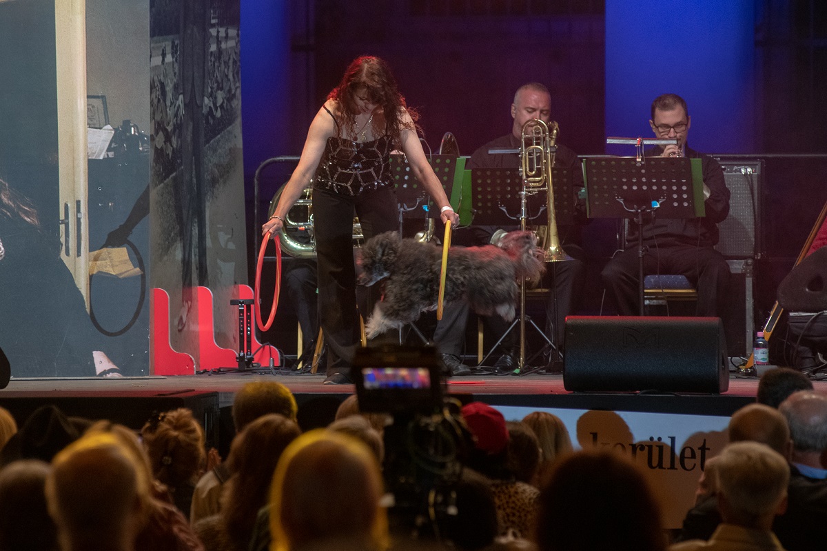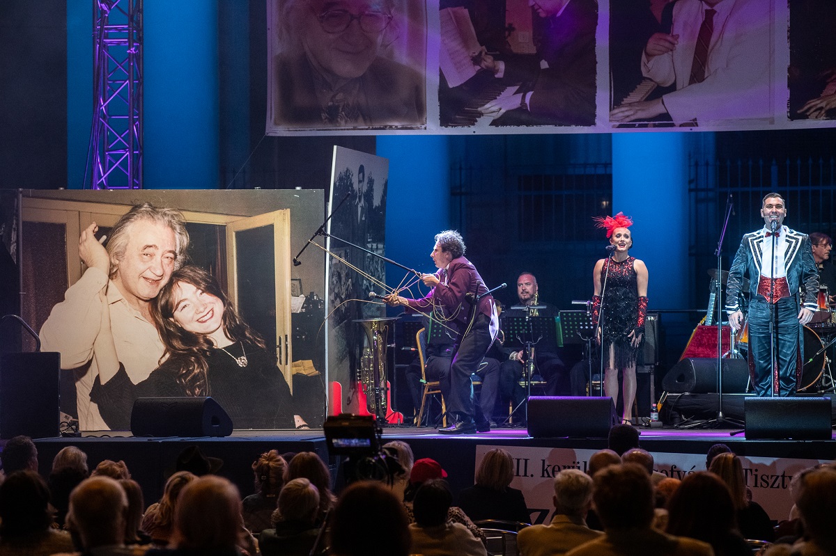 Ezután Bodrogi Gyula, a Nemzet Színésze a Fővárosi Nagycirkusz zenekara által kísérve elénekelte a Fonogram-díjjal elismert Szervusz Szenes Iván tér című dalt, és a Hofi Géza számára írt Egy kiöregedett vadászkutya dala című slágert.