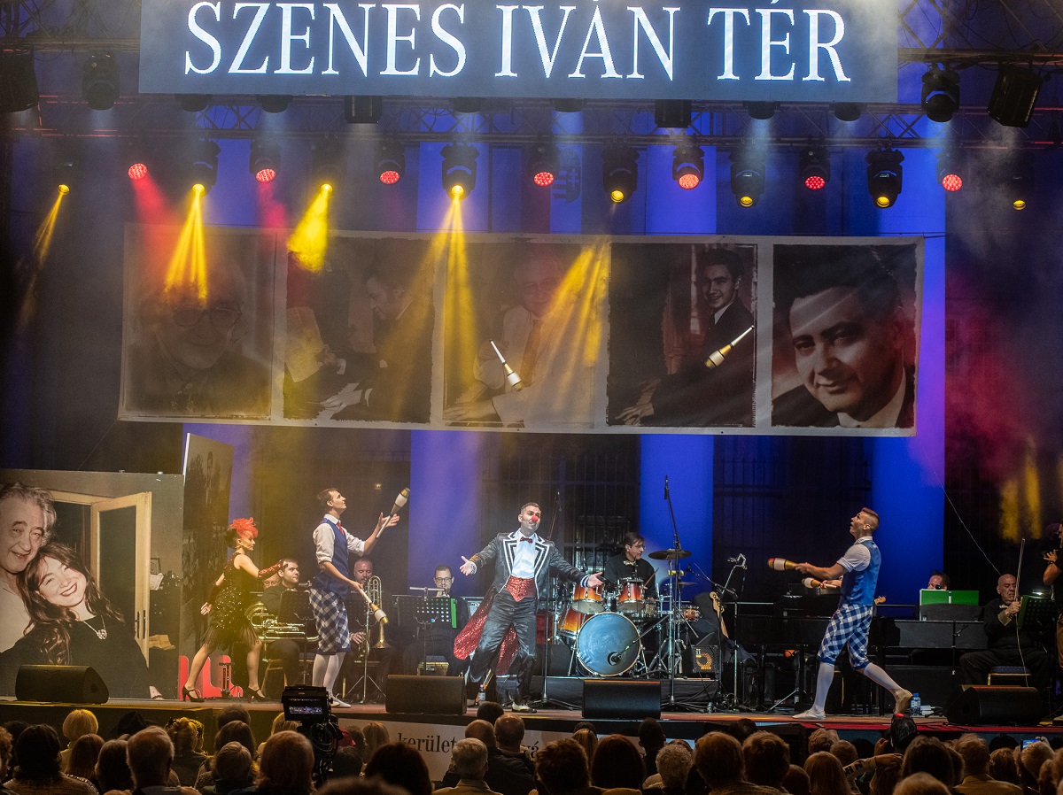 Ezután megható percek következtek, a Szenes Iván által Kovács Kati számára írt Az én időm egyszer lejár című dalt adta elő Gábor Anita. Majd visszarántva a közönséget a derűs pillanatokba, Szabó Réka koreográfiájával a Fővárosi Nagycirkusz művészei egy hamisítatlan cirkuszi karnevált varázsoltak a színpadra. Kőhalmi Natasa bohóc vidámságot, Kardos Levente izgalmas talajakrobatikát, Sárközi Péter és Sárközi Tamás pörgős zsonglőrszámot, Rezván Nikolett bájos kutyusával az ember és állat közötti barátságot, Méhes Csaba humort, a Fővárosi Nagycirkusz tánckara bájt és kellemet, miközben Maka Gyula és Gábor Anita elénekelte a Próbálj meg lazítani című ikonikus dalt. Egy szelet a sokszínű cirkuszművészetből, amely Szenes Iván életében is fontos volt, mégpedig olyannyira, hogy öt éven át volt a Fővárosi Nagycirkusz művészeti vezetője, mialatt számtalan műsort rendezett. Ezért lánya, Szenes Andrea, az emlékkoncertek szervezője megosztotta, hogy ezentúl beépítik a cirkuszművészetet az emlékestek hagyományai közé.