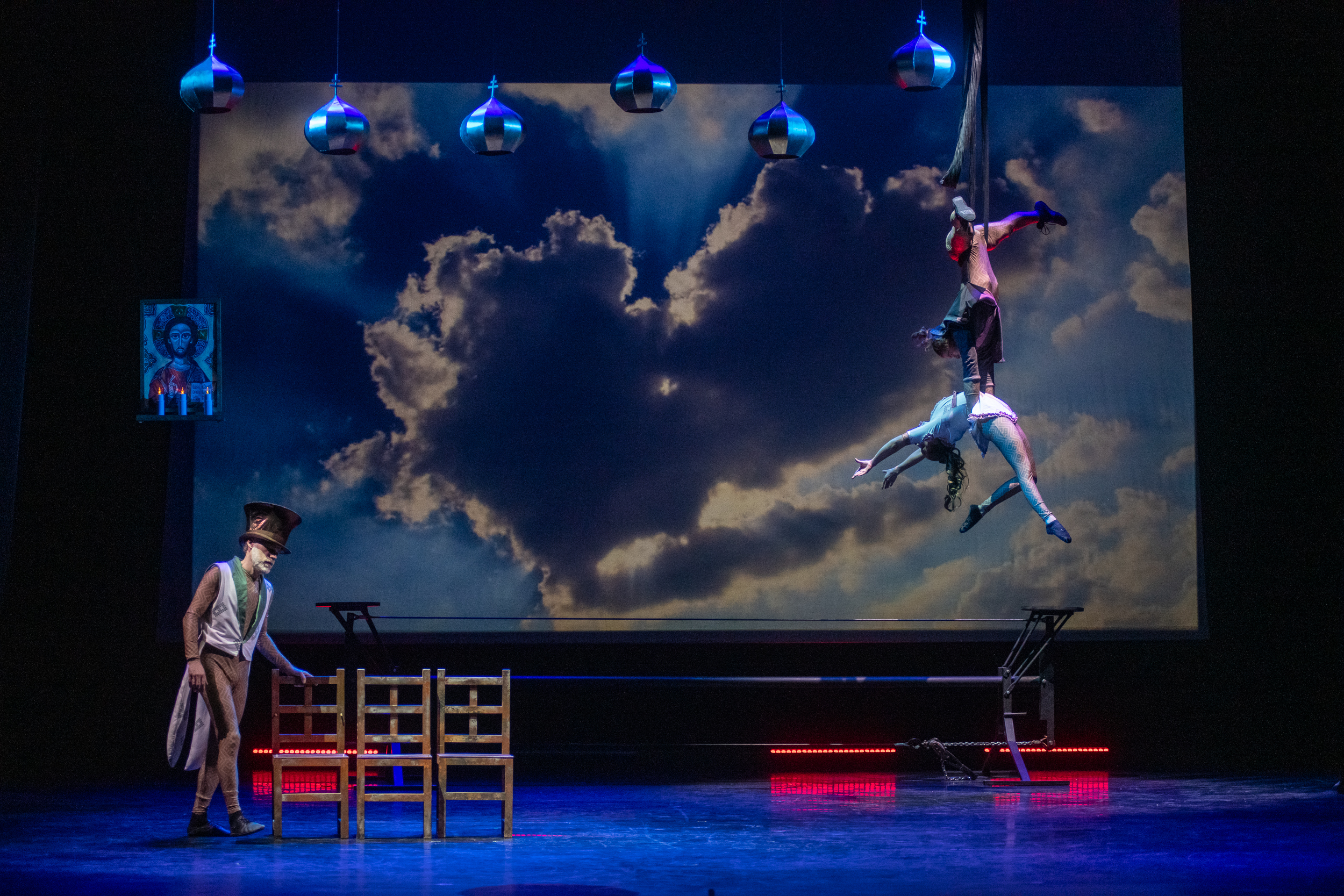 Az artistanövendékek a történetet látványos tömegjelenetekkel, beszédes cirkuszművészeti zsánerszámokkal és a fizikai színház elemeivel keltették életre. Ilyen gazdag eszköztárral az előképen kívül valóban nem volt szükség beszédre. A cselekmény gördülékenyen haladt, engem teljes mértékben képes volt lekötni. Kiegyensúlyozott elegyet alkotott a darab modern kivitelezése és a történet múltbéli keletkezése. Igen, azt hiszem átjárót teremtett a klasszikus és a modern, a hagyományok és az innováció között. A cirkusz-, tánc -, és mozgásszínházi elemek mellett a szereplők a legkülönbözőbb jellemvonásokkal bíró karaktereket mimikájukkal és gesztusaikkal tették még színesebbé.