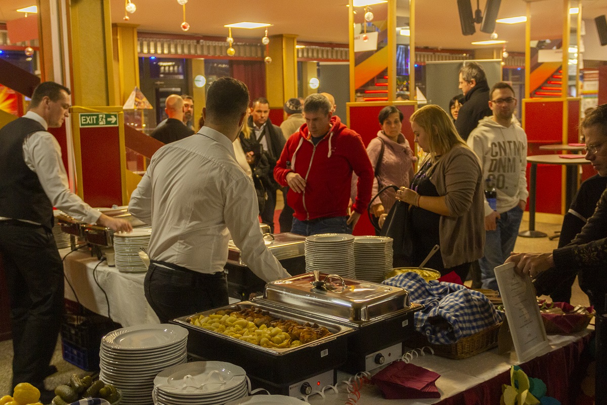 Az előadás szünete ezúttal háromnegyedórásra nyúlt, amely során a résztvevők elfogyaszthatták a szilveszteri vacsorájukat, amely során a következő fogásokból válogathattak: mini töltött káposzta tejföllel, főtt bécsi roppanó virsli, lencsefőzelék főtt virslivel vagy anélkül, malacsült tepsis burgonyával, illetve ezek mellett friss pékáruk várták őket. A szilveszteri menüből hajnali 1:00 óráig vehettek a látogatók.
