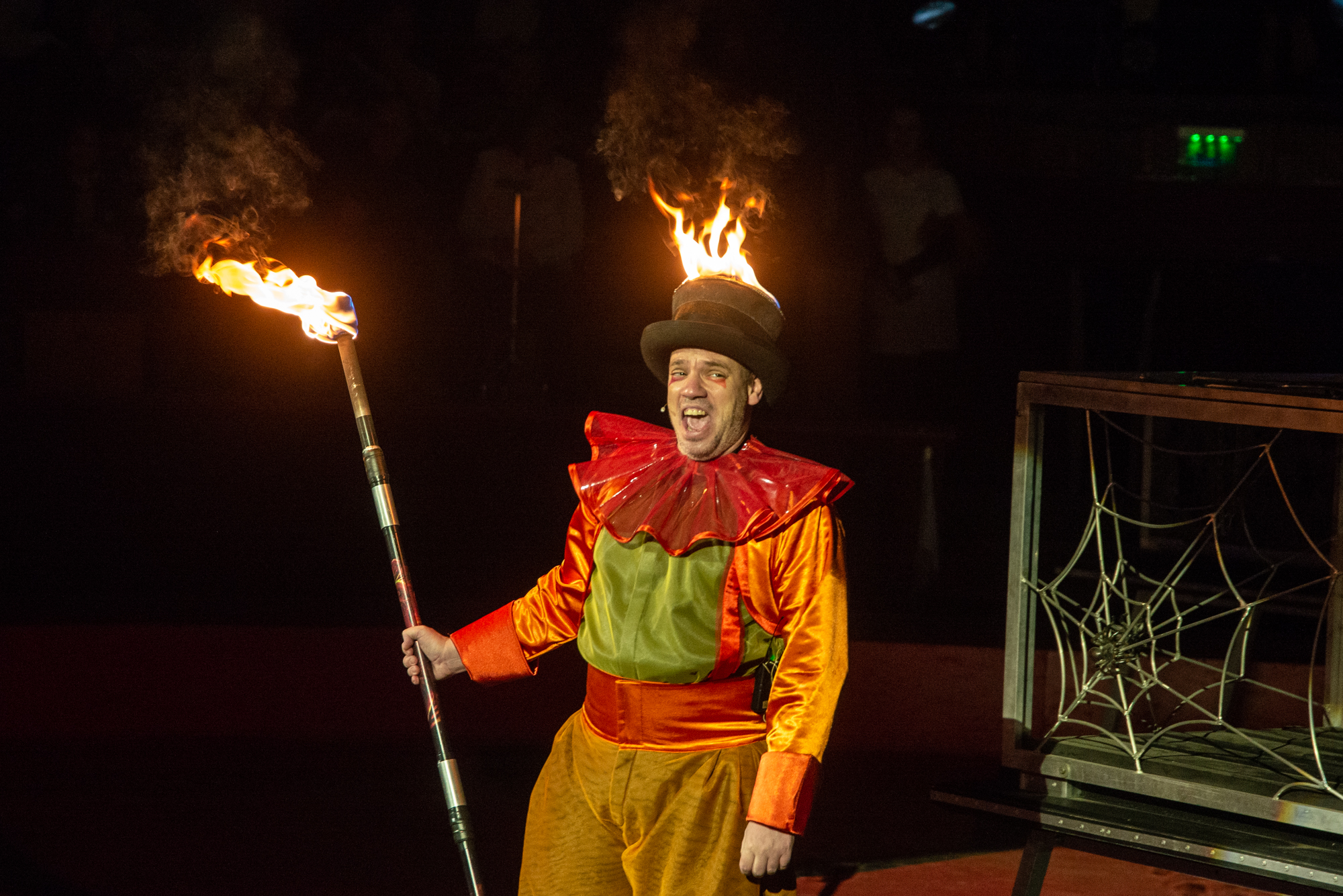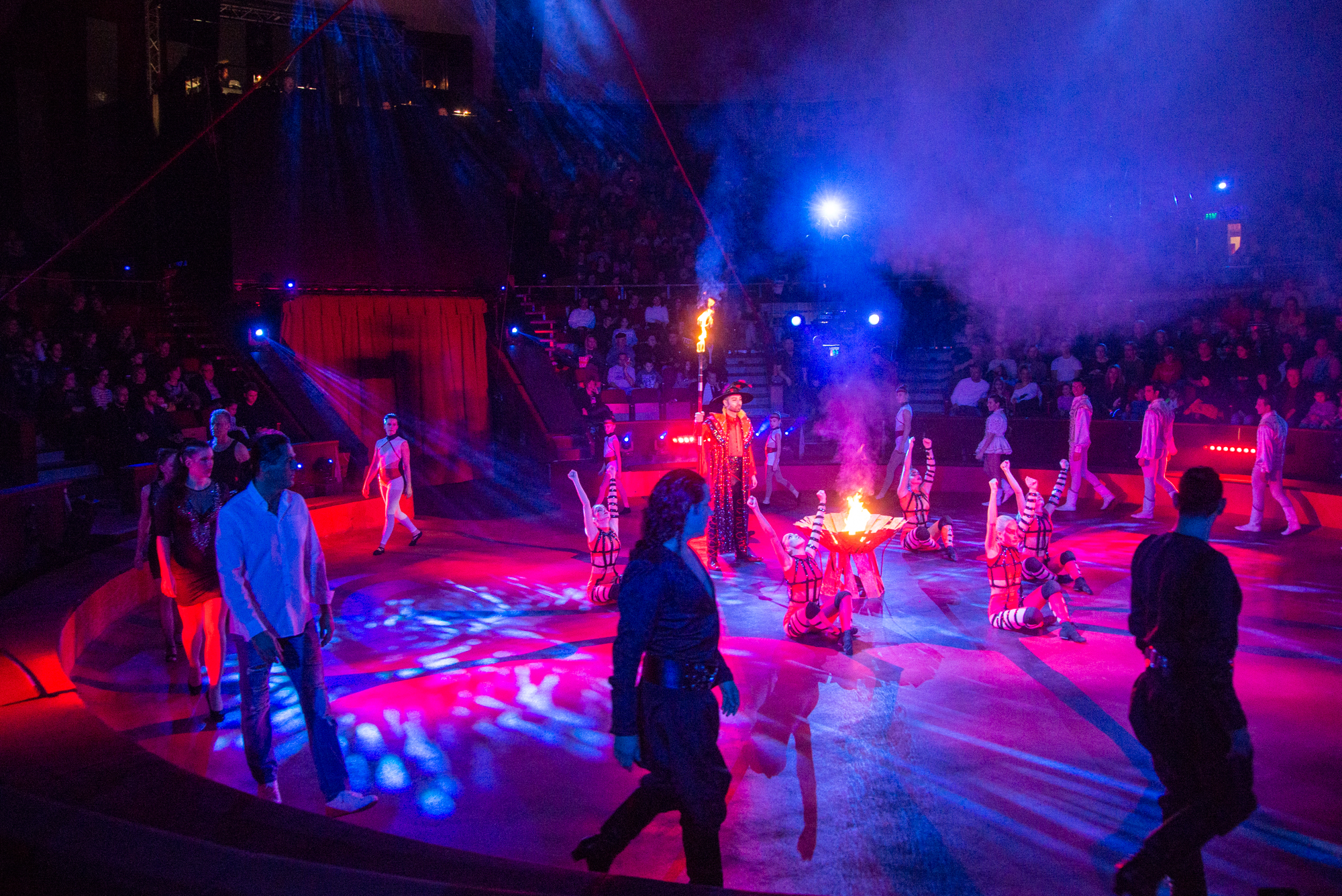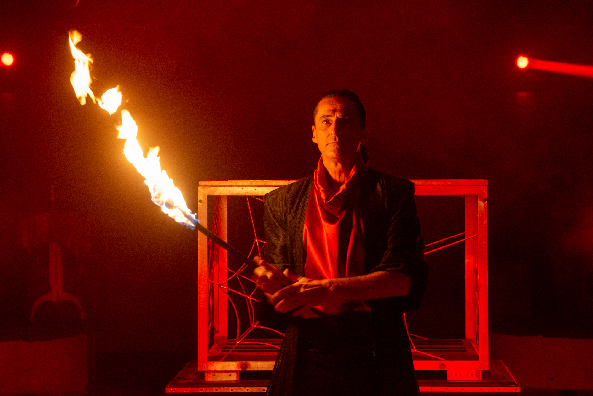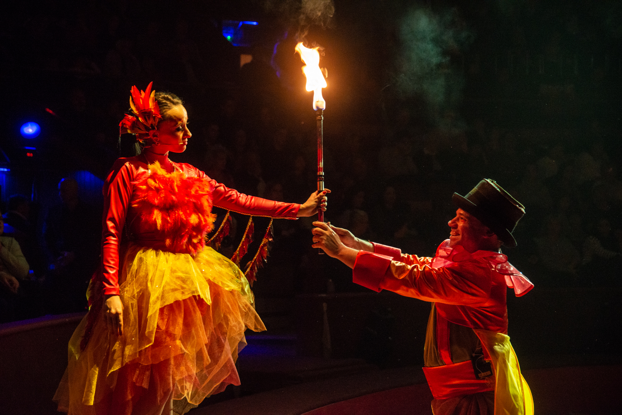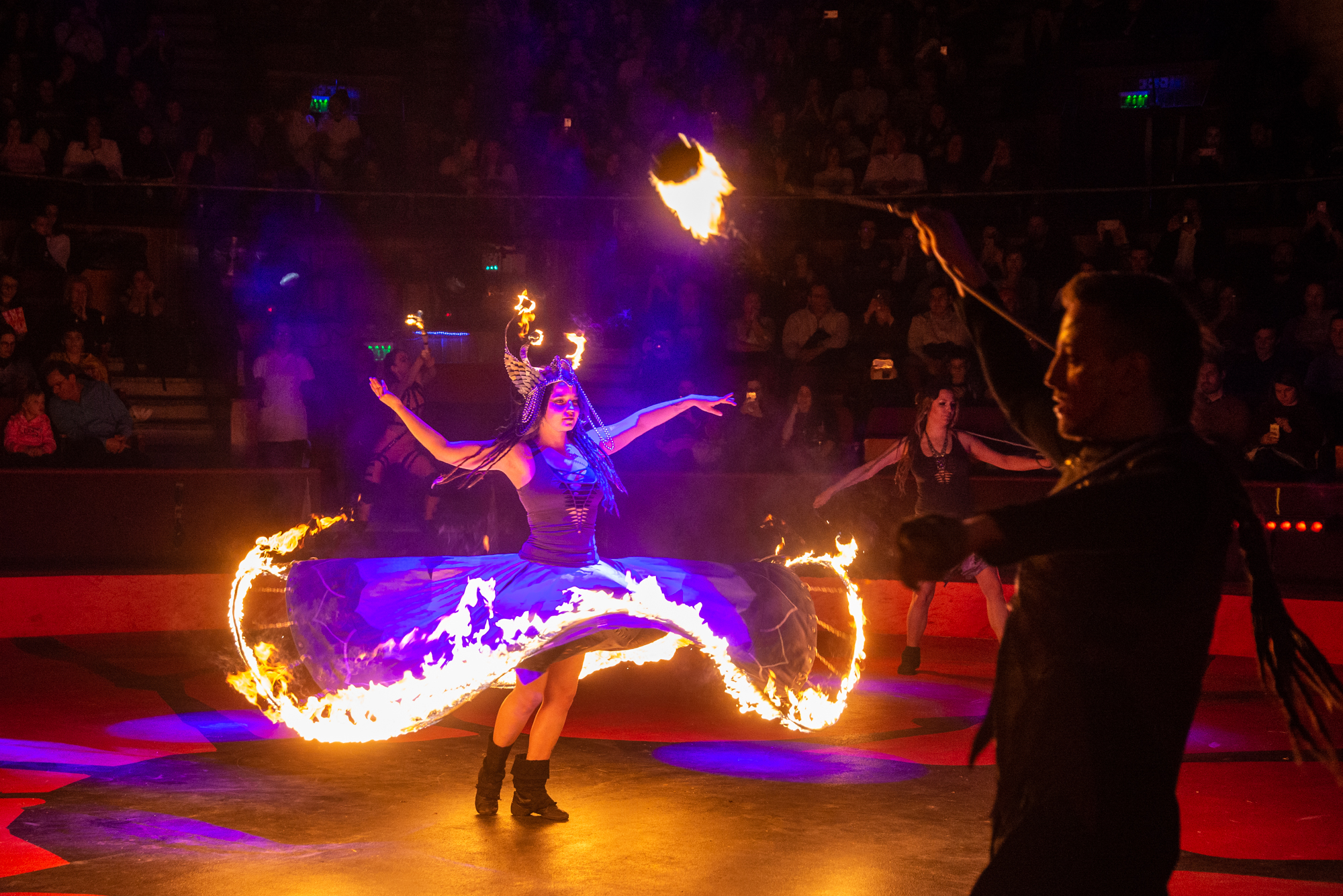 Az előadás első fellépői, az Anima Prizma tűzzsonglőr csoport az emberiség és a tűz ősi kapcsolatát jelenítette meg látványos, többször visszatérő produkcióiban. Felocsúdni sem volt idő az ámulatból, mert máris felbőgött a motor a magasban. Nehéz lenne felsorolni, hogy a Cirque du Soleil világhírű fellépője, ifj. Simet László hány nemzetközi cirkuszfesztiválon aratott sikereket, amelyekkel öregbítette a magyar cirkuszművészet hírnevét, ezért nagy izgalom lett úrrá rajtam, hogy a Fővárosi Nagycirkuszban élőben láthatom, ahogy ferde dróton motorral végigszáguld, miközben Leskó Boglárkával félelmetes trükköket hajt végre. A Tűzvarázsló és a Főnix CD minőségű énekes duettje után Richter Kevin lépett a porondra egzotikus teve és zebra számával, majd a TwirlinGirls – Jerabek Csenge és Faludi Szilvia – pörgette fel a hangulatot görkorcsolya számával. A világbajnok Nagy Molnár Dávid illuzionista bámulatos és humoros műsora után a Rippel Akadémia csupán 10 és 11 éves Tűzangyalai egy profi tissue produkciót mutattak be. Öröm volt látni, hogy ezek a fiatal tehetségek máris példaképként szolgálnak a kortársaik számára. Az Anima Prizma csoport újabb lehengerlő tűztánca után Faludi Szilvia kecses levegő-karika számával varázsolt el, majd a Richter Kevin lovas akrobata-csoport robbant be a manézsba. Richter Kevin tavaly, március 3-án, Magyar Lovas Posta című produkciójával egyszerre húsz lóval lépett fel, amellyel Guinness-rekordot döntött, most pedig lovas akrobata-csoportjával mutatta meg, hogy milyen a kiváló artistaművész felmenőitől eltanult magas szintű lovas akrobatika és magyar virtus, amit a közönség hatalmas ovációval hálált meg. Nagy Molnár Dávid újabb mágikus és misztikus bűvészprodukciója után a Rippel Brothers következett, akik nemcsak a rendezésbe, de FLOW handstand számukba is beletették az artistapályán eltöltött több, mint harminc év tapasztalatát és szakértelmét. Látványos produkciójukban a bizalom, az erő és az egyensúly kapta a főszerepet. Az argentin Diaz-Brothers gaucho-tánca igazi kuriózum a magyar közönség számára, akik látványos és precíz produkcióban varázsolták elénk a dél-amerikai néptáncon alapuló precíz és lendületes mozdulatsorokat. Az izgalmas műsort ifj. Simet László méltán halálkeréknek elnevezett produkciója zárta. Az izgalom a tetőfokára hágott, ahogy a tapasztalt artistaművész a hatalmas, tüzes rekviziten bekötött szemmel, biztosítókötél nélkül egyensúlyozott.