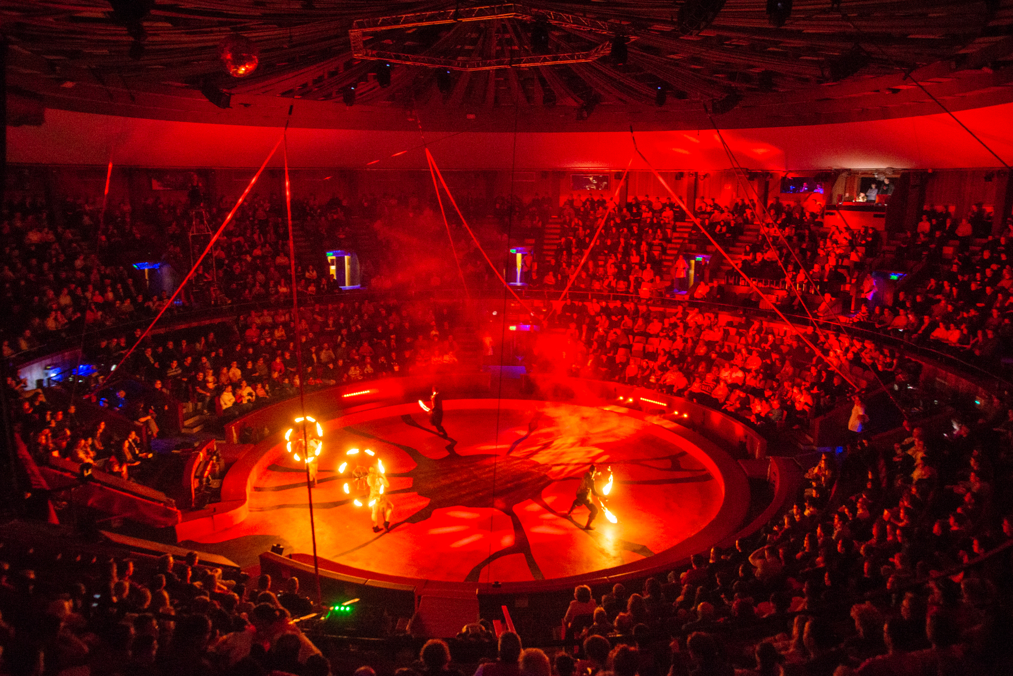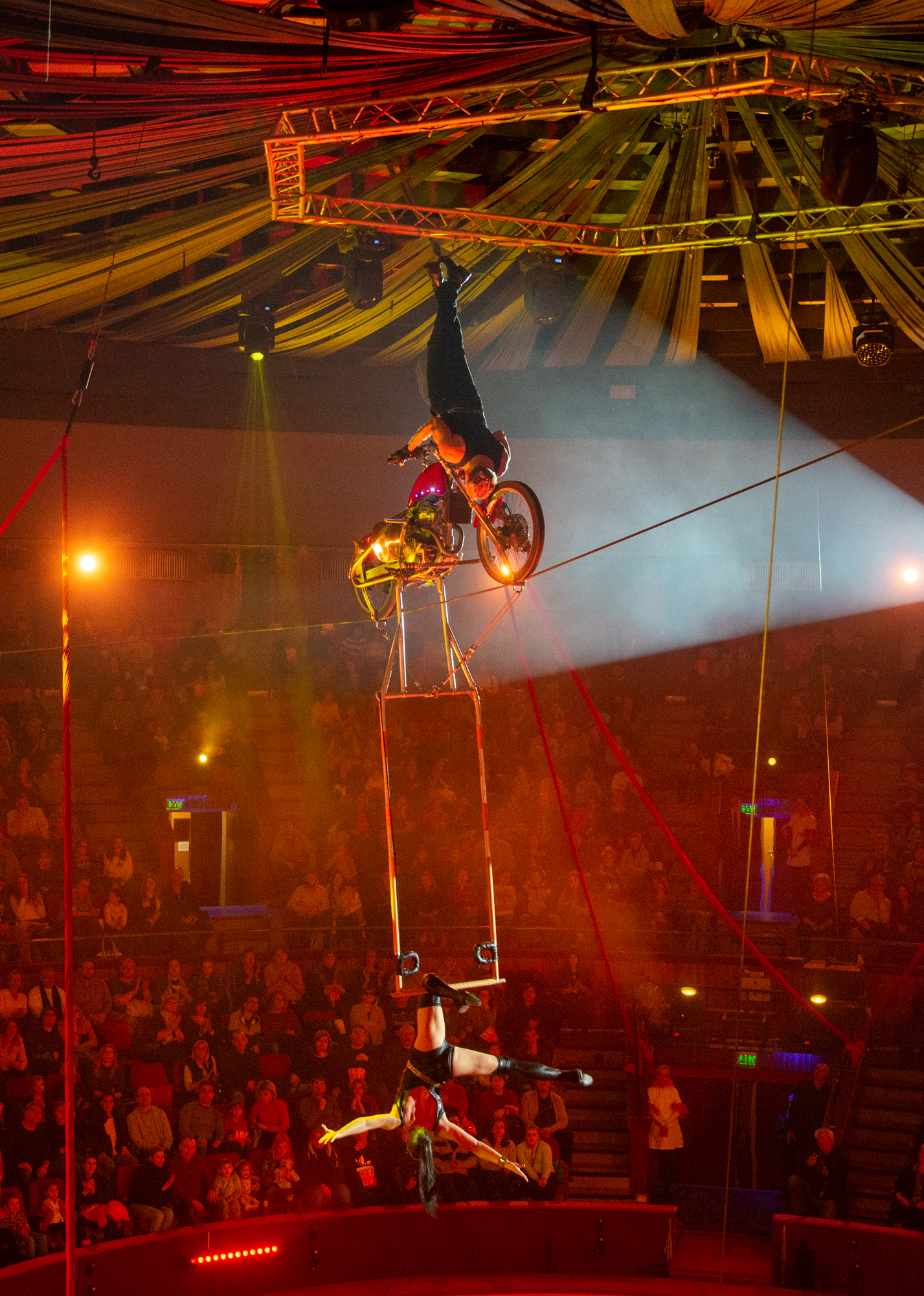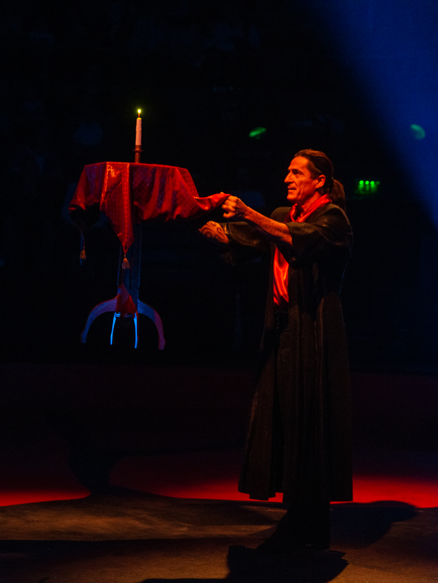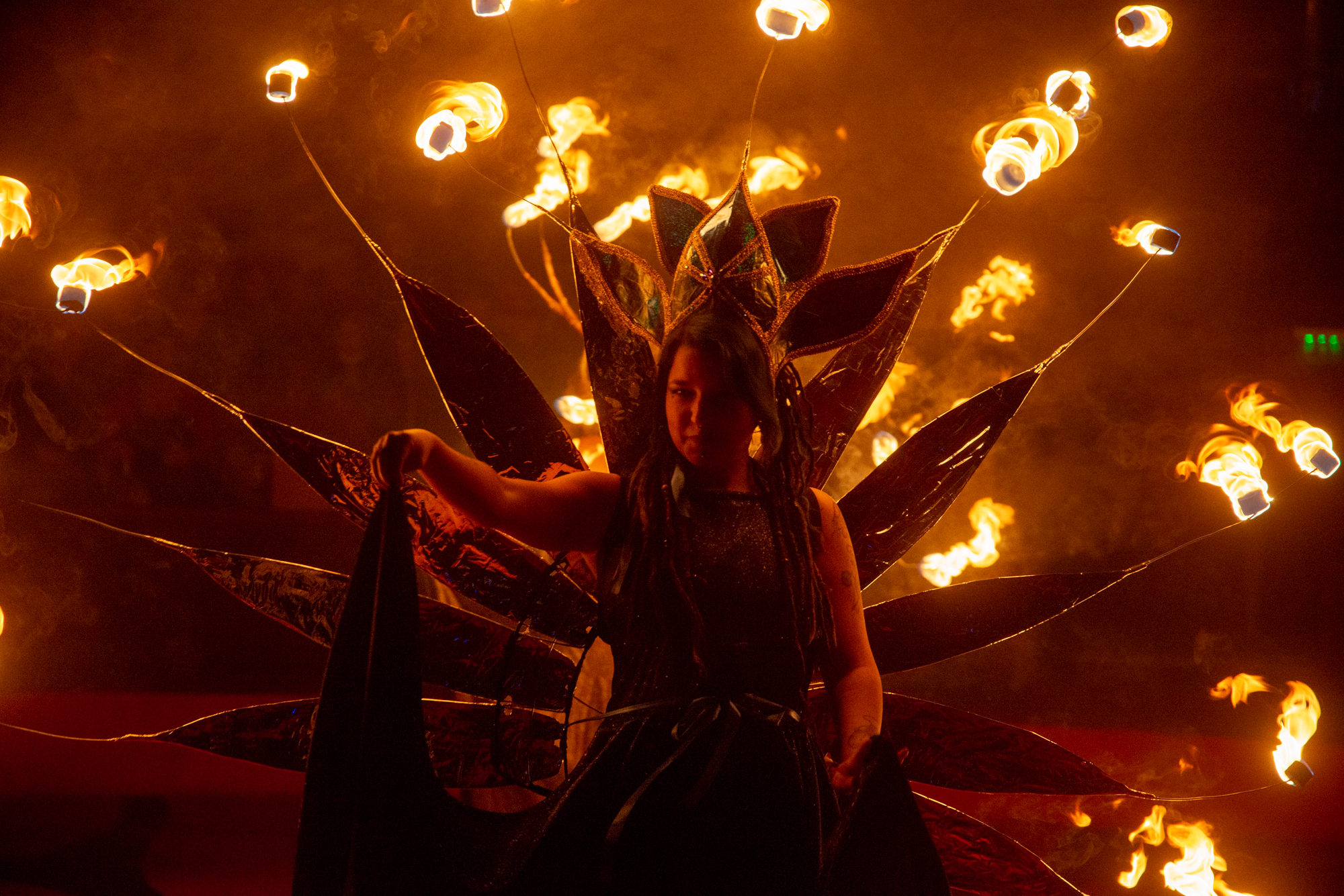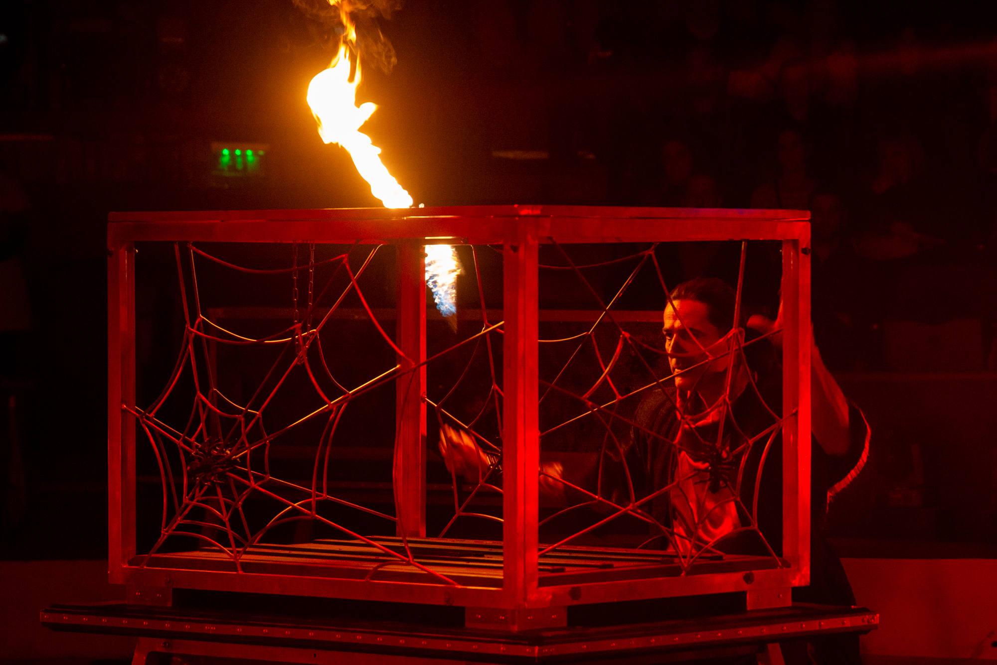 Az előadás első fellépői, az Anima Prizma tűzzsonglőr csoport az emberiség és a tűz ősi kapcsolatát jelenítette meg látványos, többször visszatérő produkcióiban. Felocsúdni sem volt idő az ámulatból, mert máris felbőgött a motor a magasban. Nehéz lenne felsorolni, hogy a Cirque du Soleil világhírű fellépője, ifj. Simet László hány nemzetközi cirkuszfesztiválon aratott sikereket, amelyekkel öregbítette a magyar cirkuszművészet hírnevét, ezért nagy izgalom lett úrrá rajtam, hogy a Fővárosi Nagycirkuszban élőben láthatom, ahogy ferde dróton motorral végigszáguld, miközben Leskó Boglárkával félelmetes trükköket hajt végre. A Tűzvarázsló és a Főnix CD minőségű énekes duettje után Richter Kevin lépett a porondra egzotikus teve és zebra számával, majd a TwirlinGirls – Jerabek Csenge és Faludi Szilvia – pörgette fel a hangulatot görkorcsolya számával. A világbajnok Nagy Molnár Dávid illuzionista bámulatos és humoros műsora után a Rippel Akadémia csupán 10 és 11 éves Tűzangyalai egy profi tissue produkciót mutattak be. Öröm volt látni, hogy ezek a fiatal tehetségek máris példaképként szolgálnak a kortársaik számára. Az Anima Prizma csoport újabb lehengerlő tűztánca után Faludi Szilvia kecses levegő-karika számával varázsolt el, majd a Richter Kevin lovas akrobata-csoport robbant be a manézsba. Richter Kevin tavaly, március 3-án, Magyar Lovas Posta című produkciójával egyszerre húsz lóval lépett fel, amellyel Guinness-rekordot döntött, most pedig lovas akrobata-csoportjával mutatta meg, hogy milyen a kiváló artistaművész felmenőitől eltanult magas szintű lovas akrobatika és magyar virtus, amit a közönség hatalmas ovációval hálált meg. Nagy Molnár Dávid újabb mágikus és misztikus bűvészprodukciója után a Rippel Brothers következett, akik nemcsak a rendezésbe, de FLOW handstand számukba is beletették az artistapályán eltöltött több, mint harminc év tapasztalatát és szakértelmét. Látványos produkciójukban a bizalom, az erő és az egyensúly kapta a főszerepet. Az argentin Diaz-Brothers gaucho-tánca igazi kuriózum a magyar közönség számára, akik látványos és precíz produkcióban varázsolták elénk a dél-amerikai néptáncon alapuló precíz és lendületes mozdulatsorokat. Az izgalmas műsort ifj. Simet László méltán halálkeréknek elnevezett produkciója zárta. Az izgalom a tetőfokára hágott, ahogy a tapasztalt artistaművész a hatalmas, tüzes rekviziten bekötött szemmel, biztosítókötél nélkül egyensúlyozott.