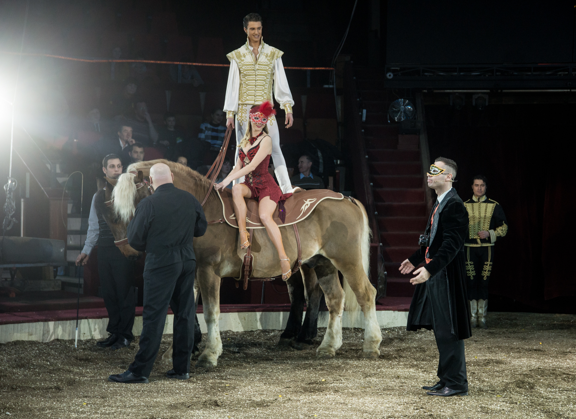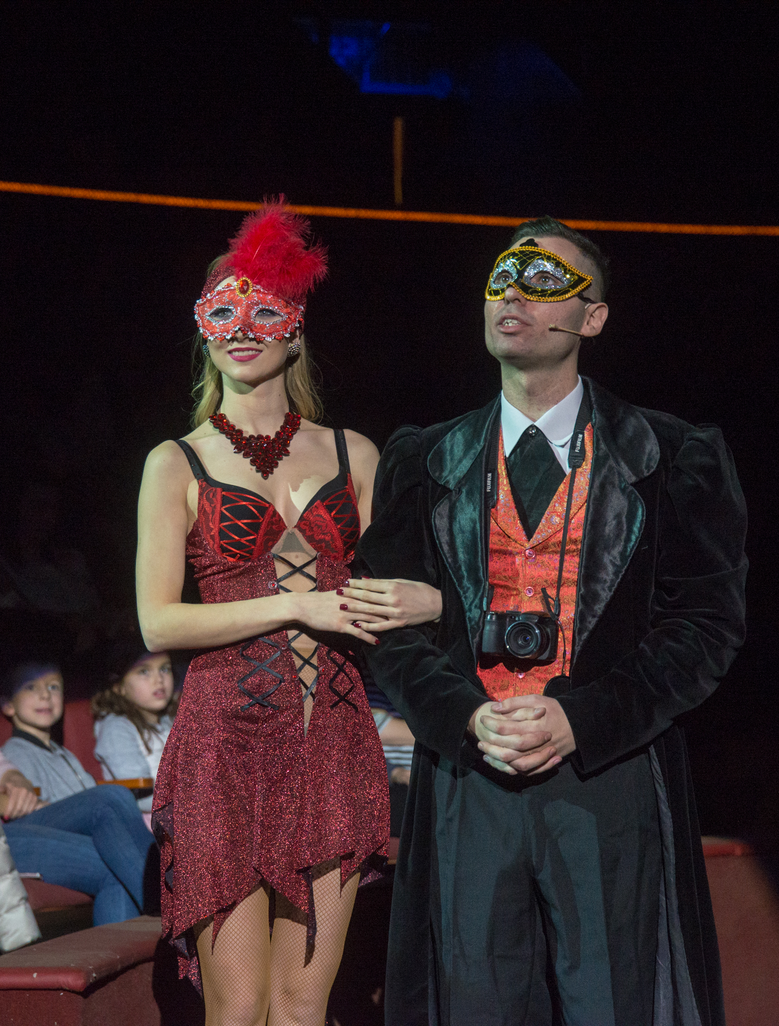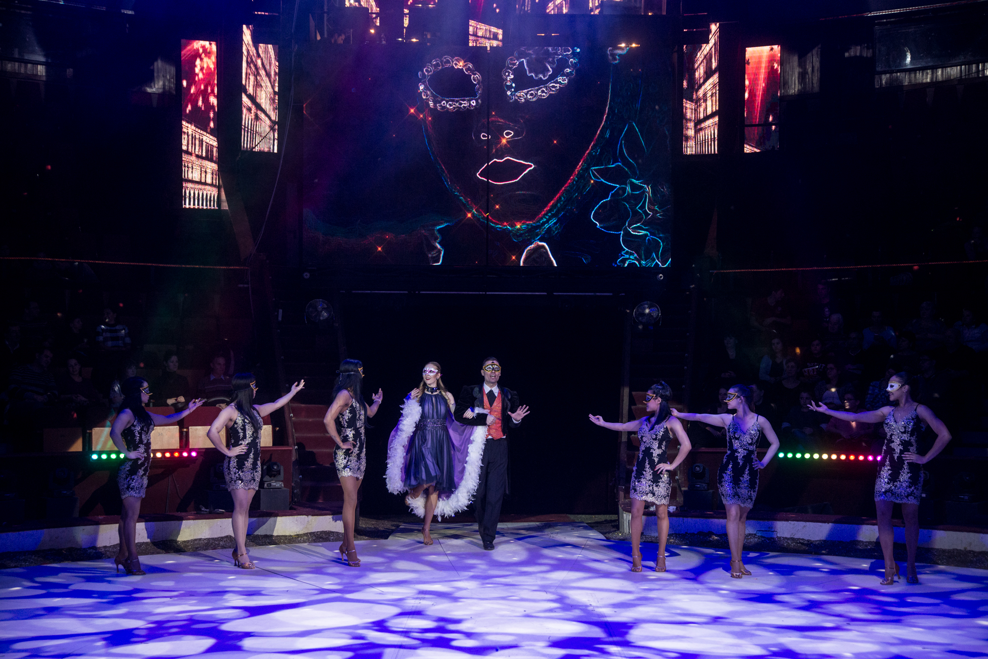 Leszáll az est, egy szerelmespár elvegyül a karneváli forgatagban, hogy együtt fedezzék fel a lenyűgöző produkciókat, a nevetést, a táncot, a vidámságot, a szórakozást, a szerelmet és a cirkuszi varázslat izgalmát. A táncos-énekes bevonulás után azonnal a férfi és nő közötti tüzes viszonyt és évődést mutatta be a Duo Romance kínai rúd számával, majd a Without Socks orosz bohóctrió vicces, a fényképezés nehézségeit bemutató entré műsorával nevettette meg a közönséget. A cirkuszművészet egyik alapja a bizalom, ahogy a tiszta szerelemé is, amit elképesztő technikai tudással, a Fővárosi Nagycirkusz zenekarának hangulatos aláfestő zenéjére jelenített meg az ukrán Duo Feeling gurtni számában. Ezután a kavalkádban kalandozó szerelmespárt Stanislav Vysotskyi zsonglőr ejtette ámulatba, aki mind a négy végtagjával bűvölte a labdákat, majd az orosz bohóctrió vadította meg a közönséget táncos produkciójukkal. A tánckar bájos átvezetője után, a többszörös fesztiváldíjas Richter Flórián vonult be díszegyenruhájában éjfekete ménjén, majd fia Kevin mutatta be a világon egyedülálló, húsz lovas postakocsi számát. Az újabb és újabb lovak láttán egyre nőtt bennem a feszültség és az izgalom, elképesztő látvány volt!