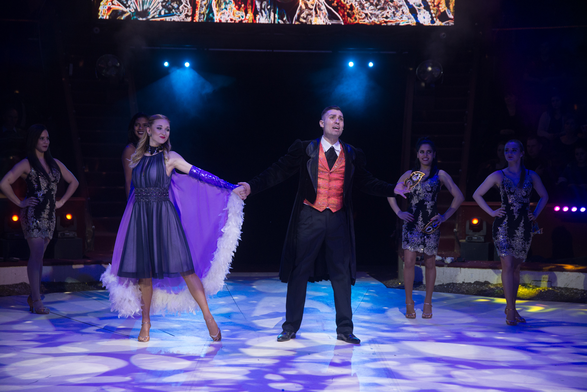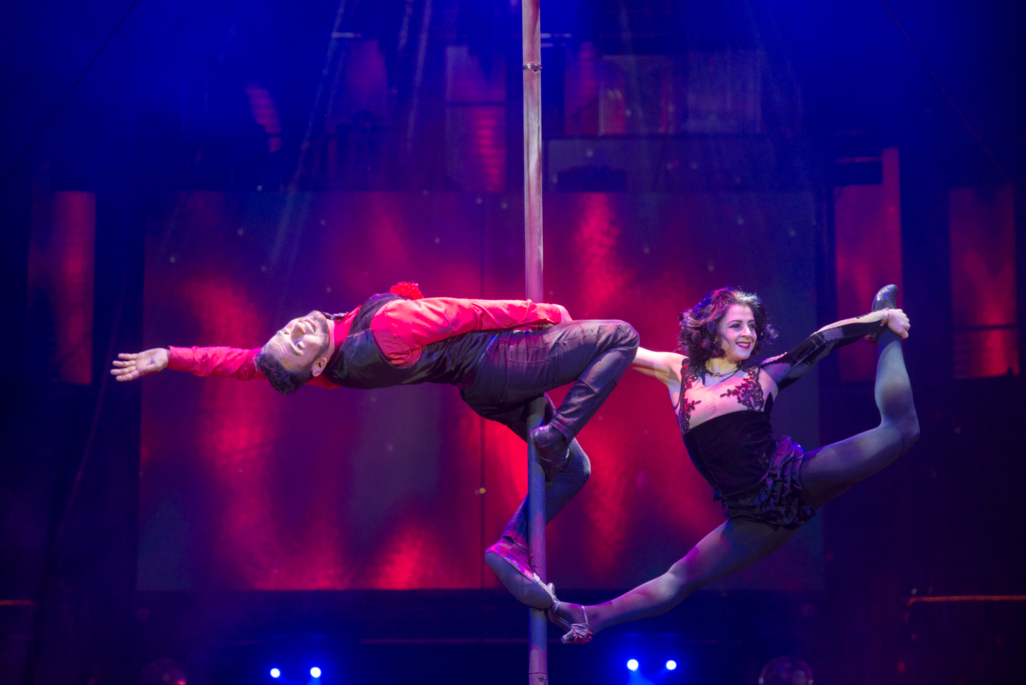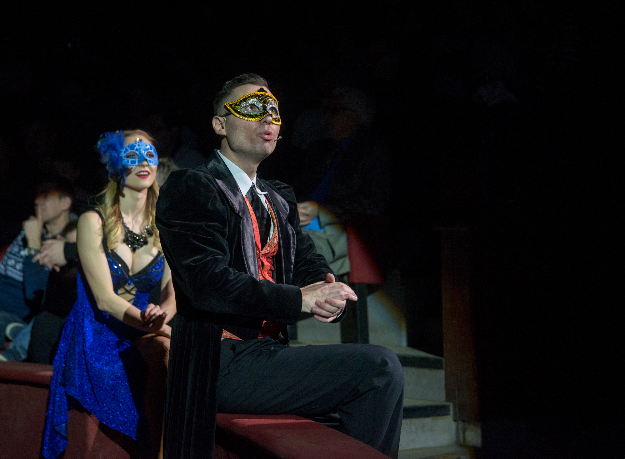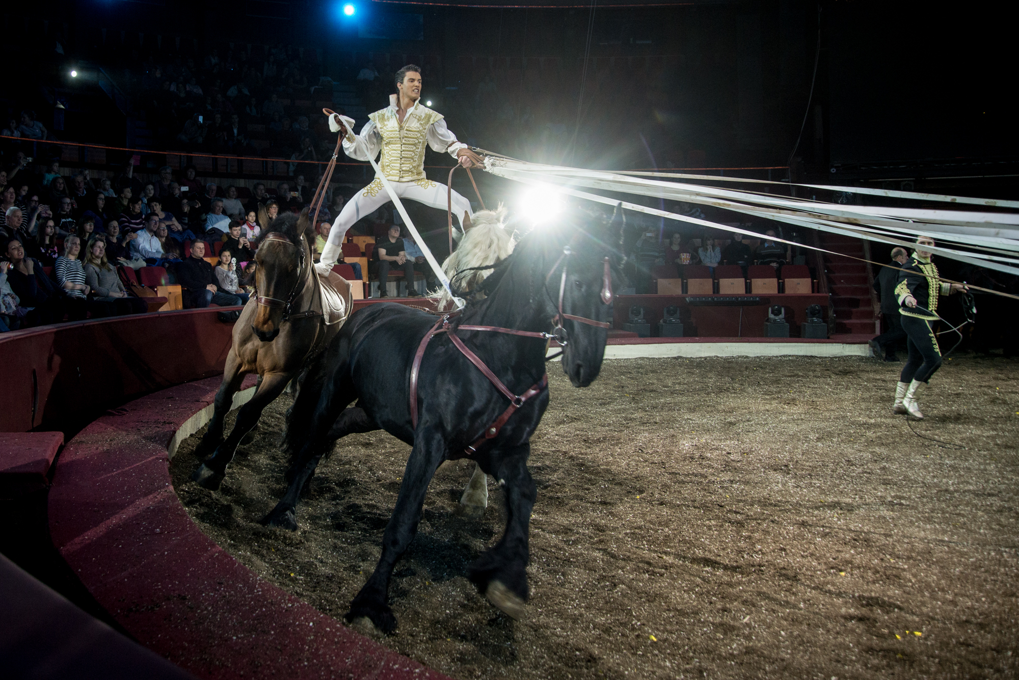 Leszáll az est, egy szerelmespár elvegyül a karneváli forgatagban, hogy együtt fedezzék fel a lenyűgöző produkciókat, a nevetést, a táncot, a vidámságot, a szórakozást, a szerelmet és a cirkuszi varázslat izgalmát. A táncos-énekes bevonulás után azonnal a férfi és nő közötti tüzes viszonyt és évődést mutatta be a Duo Romance kínai rúd számával, majd a Without Socks orosz bohóctrió vicces, a fényképezés nehézségeit bemutató entré műsorával nevettette meg a közönséget. A cirkuszművészet egyik alapja a bizalom, ahogy a tiszta szerelemé is, amit elképesztő technikai tudással, a Fővárosi Nagycirkusz zenekarának hangulatos aláfestő zenéjére jelenített meg az ukrán Duo Feeling gurtni számában. Ezután a kavalkádban kalandozó szerelmespárt Stanislav Vysotskyi zsonglőr ejtette ámulatba, aki mind a négy végtagjával bűvölte a labdákat, majd az orosz bohóctrió vadította meg a közönséget táncos produkciójukkal. A tánckar bájos átvezetője után, a többszörös fesztiváldíjas Richter Flórián vonult be díszegyenruhájában éjfekete ménjén, majd fia Kevin mutatta be a világon egyedülálló, húsz lovas postakocsi számát. Az újabb és újabb lovak láttán egyre nőtt bennem a feszültség és az izgalom, elképesztő látvány volt!