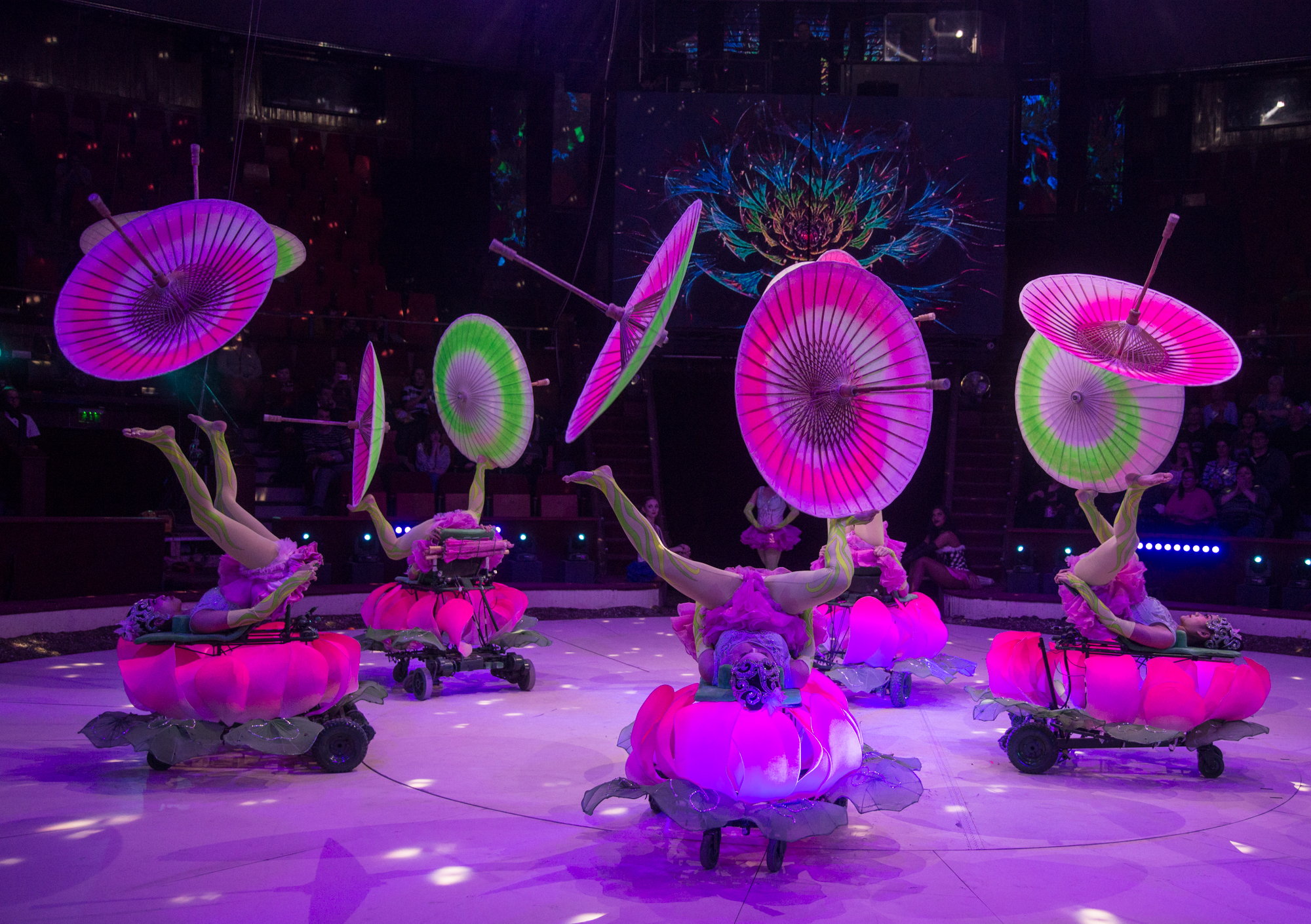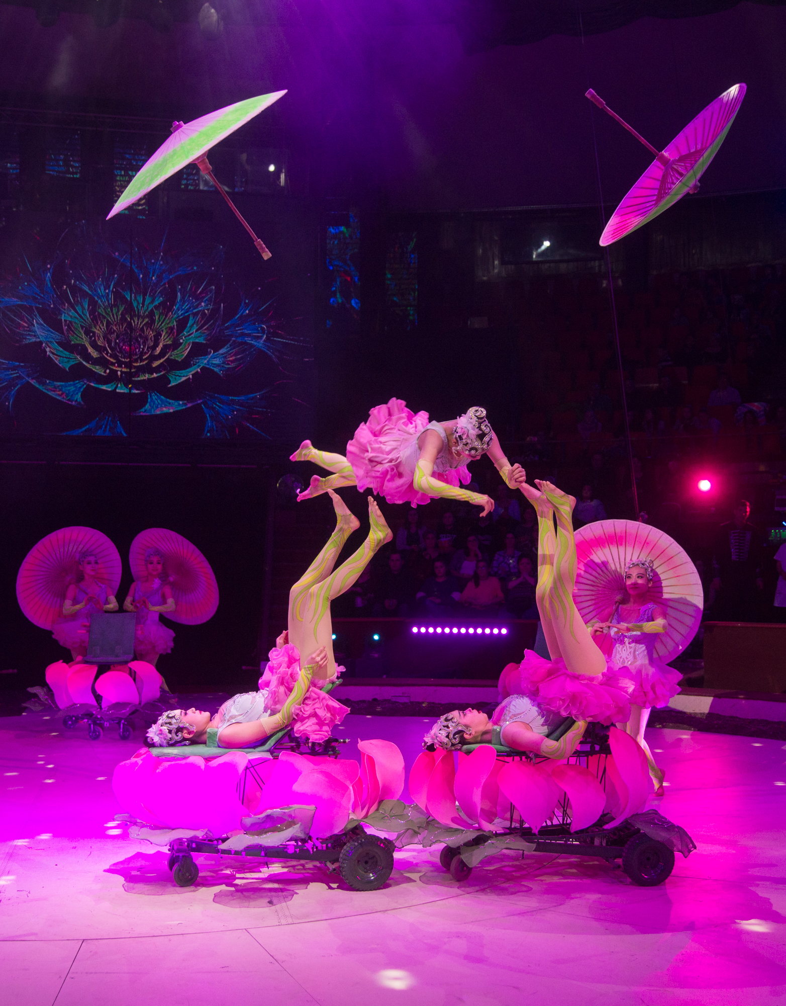 A szünet után, a Chinese National Acrobatic Troupe varázsolta a manézsba a kelet szépségét és misztikumát bájos lótusztündérek képében, miközben az először Magyarországon bemutatott esernyőzsonglőr számukban tökéletes összhangban, egyenként nyolc esernyőt egyensúlyoztak és pörgettek a lábukon. A káprázatból szúnyogzümmögés zökkentett ki, ugyanis a Without Socks második produkciójában két szúnyog áldozatáért való vetélkedésével indított támadást nem csak a vénák, de a rekeszizmok ellen is, újszerű köntösbe csomagolt hagyományos poénokkal. A vidám percek után drukkal elegyült izgalom lett úrrá rajtam, amikor az ukrán Bicycle Date férfi tagja hajmeresztő biciklis mutatványaiban többször is átugratta partnernőjét, majd a Lettországból érkezett Andrejs Fjodorvs prezentálta ember és állat harmonikus kapcsolatát galambjaival, kutyájával és parányi kakasával. A Duo Solys a forró Kubát és az elegáns Párizst elevenítették meg erőemelő-perzs számukban, melyben a nemek teljes egyenlőségében, az emberi teljesítőképesség határait feszegették. Az orosz bohócok sokrétű képzettségére tökéletes példa a Without Socks, akik ezúttal ének és zenei tehetségükkel robbantották fel a nézőteret. Az utolsó műsorszám egy igazi kuriózum volt Oroszországból, a Group Gallea, akik földön és levegőben bemutatott pörgős, merész és lendületes produkciója bizalomról, csapatmunkáról, profizmusról, összetartásról és bátorságról árulkodott.