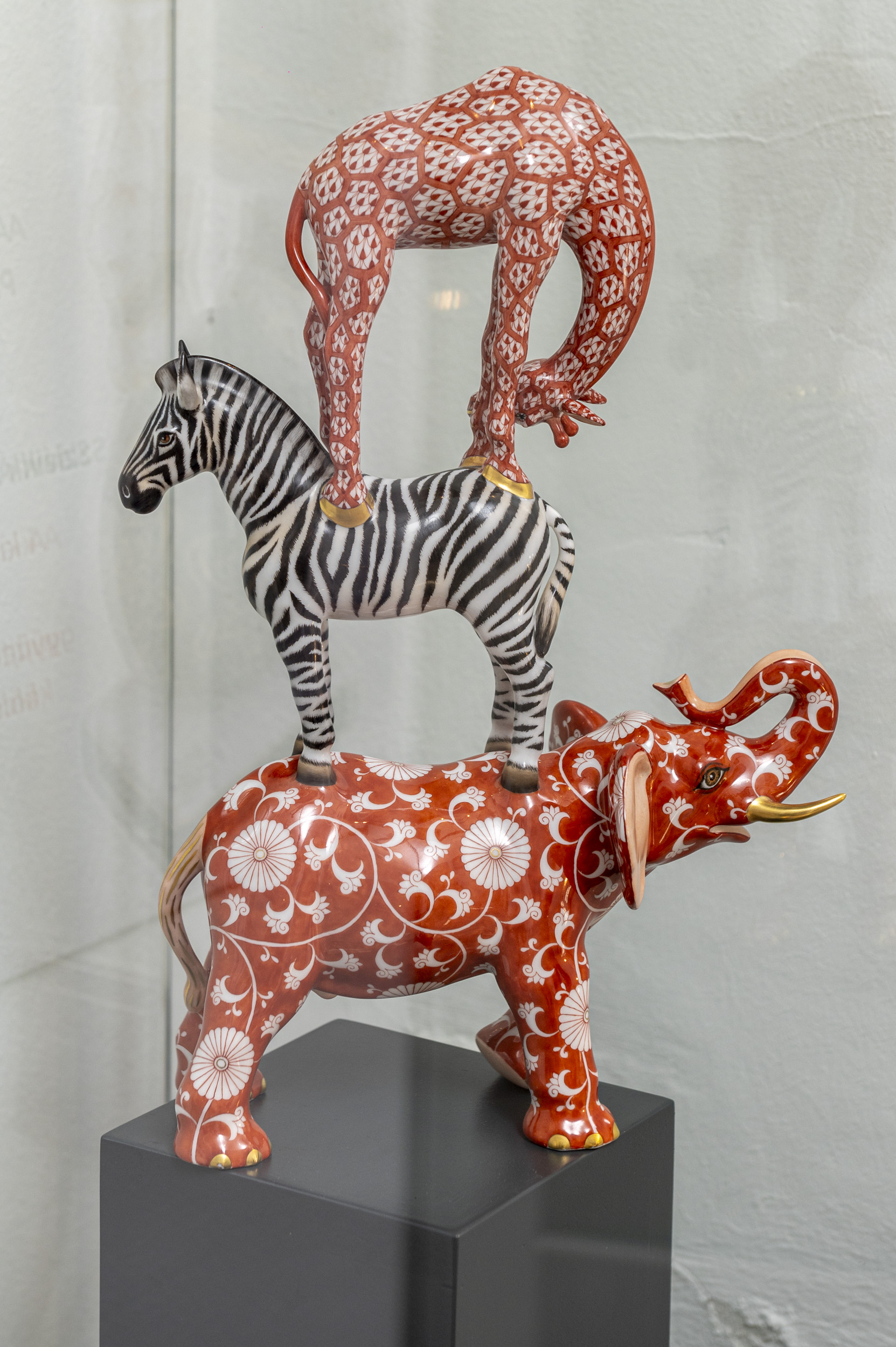 A porcelánok inspiráltak bennünket – tette hozzá. 100 négyzetméteren, egy rendkívül tartalmas, a padótól a mennyezetig csodákat rejtő kiállítás született – mondta a Magyar Cirkuszművészeti Múzeum, Könyvtár és Archívum múzeumvezetője, aki Simet László, Hortobágyi Károly- díjas artistaművészt, Magyarország Érdemes Művészét kérte fel a „Cirkuszi elefánt a porcelánmúzeumban” című kiállítás megnyitójának tárlatvezetésére.