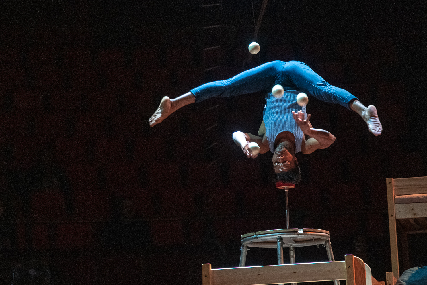 A következő fellépő egy előadásmódjával könnyedséget sugalló, ámde nagy tudást igénylő produkciót mutatott be. A Kolumbiából érkezett José Valencia ritkaságszámba menő kopfstand zsonglőr számában fejen állva zsonglőrözött nemcsak a kezeit, de a lábait is használva, miközben körbeforgott. A labdák egyszer sem estek le. Tapsolás közben eszembe jutott, hogy ebben a pár perces produkcióban is egy élet kemény munkája fekszik.