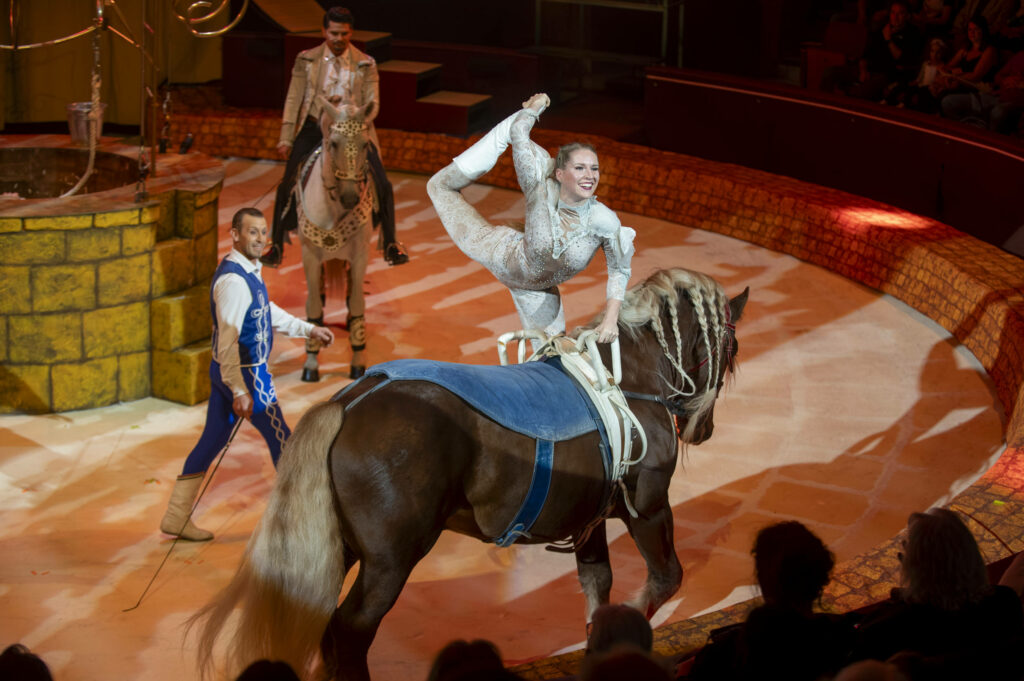 Közreműködők a Nemzeti Lovas Színház társulatából / Performers from the National Equestrian Theatre: Pintér Tibor „Tenya”, Ilyés Jenifer, Mohácsi Márk Dániel
