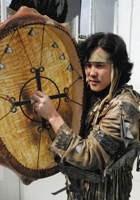 A másik fontos hangszerük a dob, ami a jakutoknál ovális alakú, a fogantyúja pedig belül található. A fa keretet lóbőrrel vonják be. A lóbőrt még nyersen megnedvesítik, majd pár napos ázást követően a lószőr leszedhető a bőrről, így válik csupasszá a felület. A bőrt még nedves állapotában erősítik rá a dob kávájára, és amikor megszárad, megfeszül. Miután kész, rákerülnek a különböző rajzok és ábrázolások. Egy istenek és szellemek által kiválasztott sámán dobjait olyan ábrák díszítik, amiknek csak ő ismeri a jelentésüket. Csak akkor lesz zengő hangja, ha tűz mellett megmelegítik, mert még tovább feszül a dob.