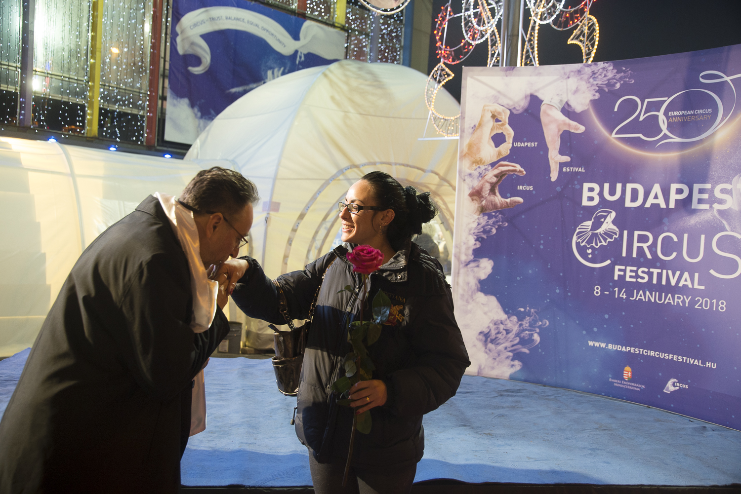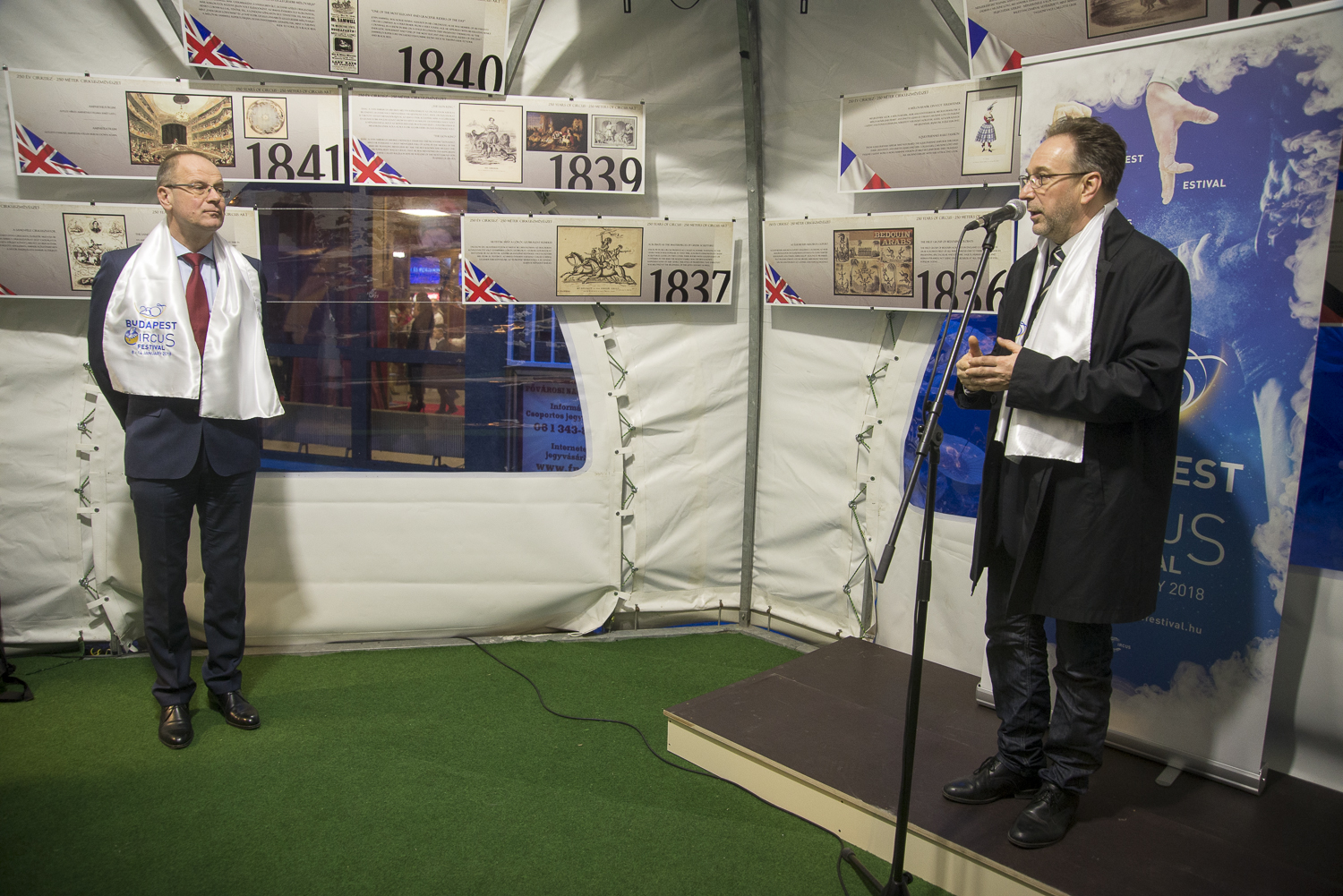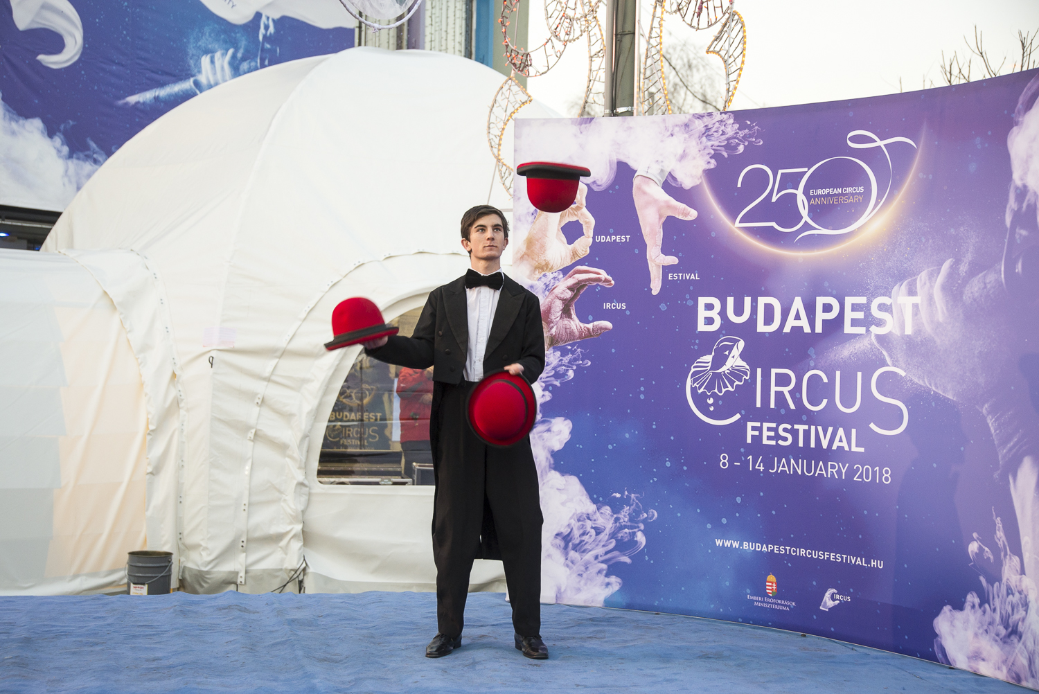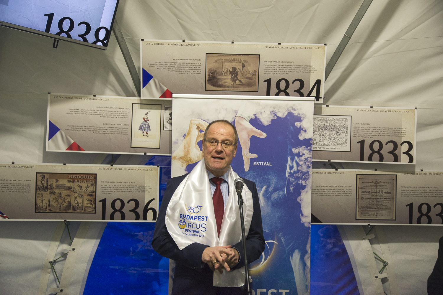 Délután öt órakor Navracsics Tibor, oktatásért, kultúráért, ifjúságért és sportért felelős európai uniós biztos nyitotta meg a cirkuszművészet történetét bemutató kiállítást. A 250 év Cirkusz, 250 méter cirkuszművészet című időszaki kiállítás 250 tablón idézi fel Európa cirkusztörténetét a nagycirkusz épülete előtt felállított sátorban. A tablók időrendi sorrendben követik egymást és egy-egy emlékezetes pillanatra fókuszálnak.