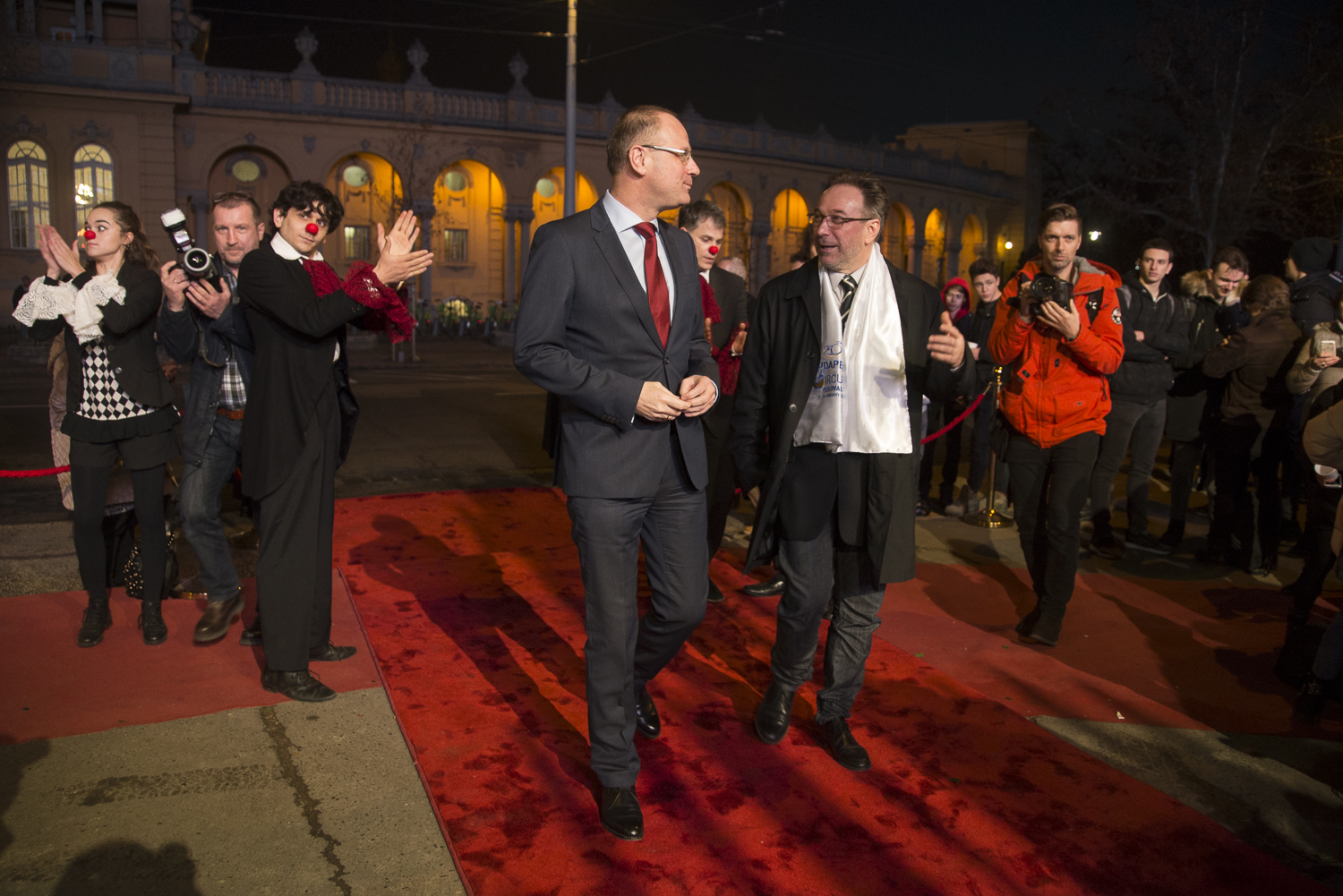 A Fővárosi Nagycirkusz előtt felállított sátornál már délután gyülekeztek az érdeklődők, akik látványos, vidám produkciók kíséretében követhették nyomon a cirkuszfesztivál résztvevőinek érkezését. Az artisták és bohócok megteremtették az alaphangulatot az egy héten át tartó nemzetközi seregszemle megnyitójához.