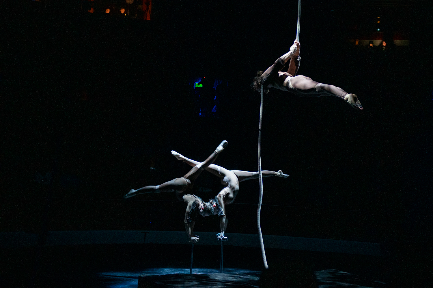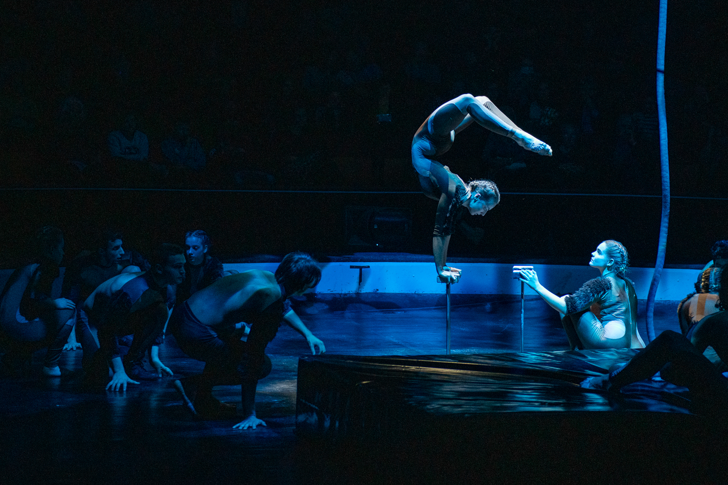 Rám különösen drámai hatást tett Ká, a kígyó „színre csúszása”, aki kaucsuk elemekkel vegyített handstand számmal prezentálta letaglózó hipnotikus erejét, áldozatának megbűvölését és lenyelését. Ahogy minden jelenetre, erre is jellemző volt a mozgásszínházi koreográfia és a cirkuszművészet összeolvadása, finom közös lüktetése, a két művészeti ág egymást segítése és többé tétele. Ez nemcsak látványos, de rengeteg dolgot képes közölni a nézővel egyetlen pillanat alatt, hatást gyakorolva az érzékszervekre és a gondolatokra. Ká a világ azon kísértéseit testesíti meg, amik könnyen a bűvkörükbe vonhatnak minket, és ha nem vigyázunk, akár a halálunkat is okozhatják.