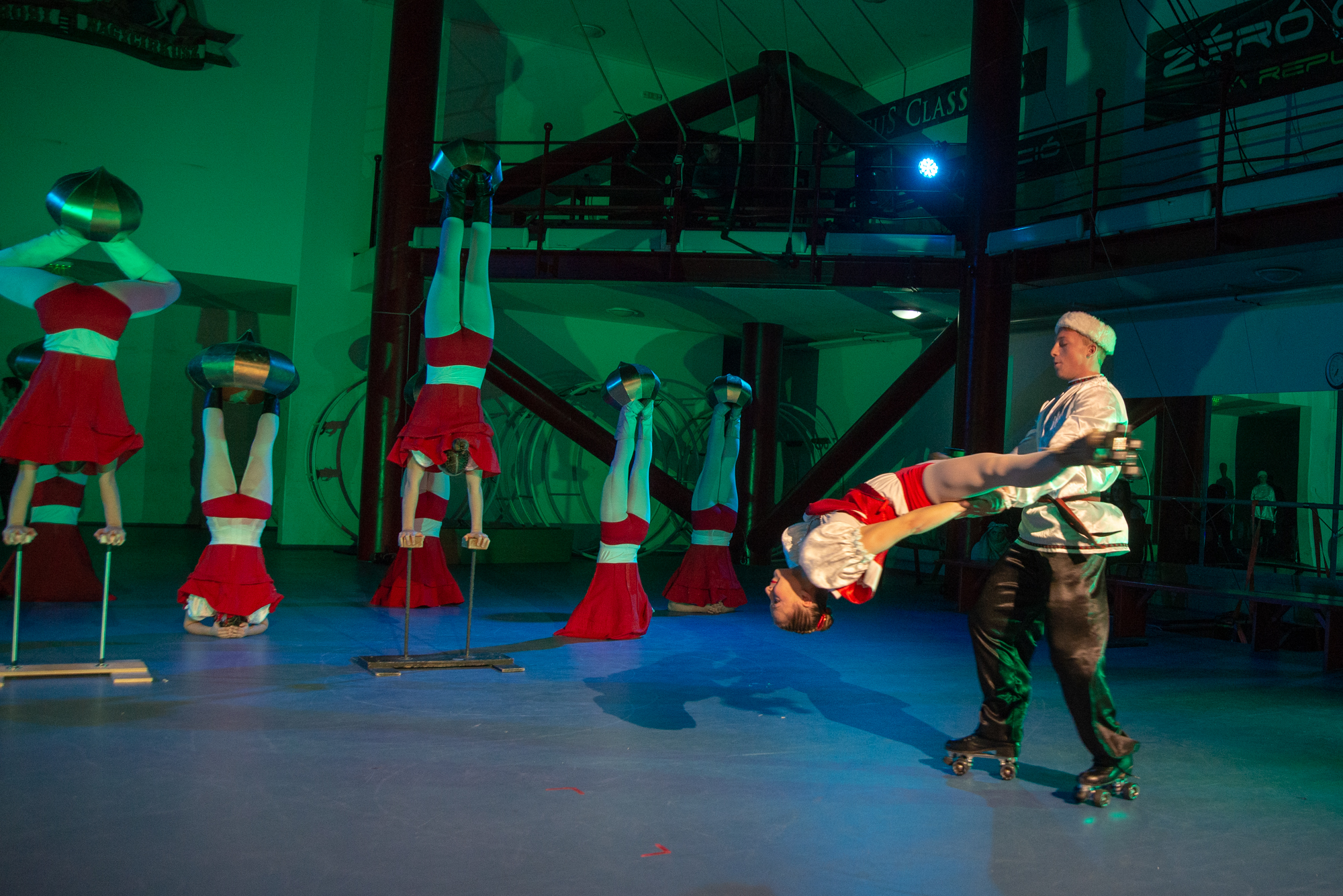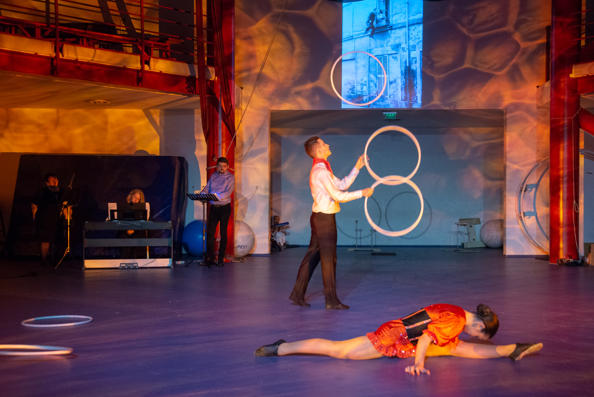 Az első produkció, a Visage de lamure címmel Varga Gabriella irányításával jött létre, amelyet Boros Ferenc és Lauri Vivienn mutatta be. Felkészítő tanáraik Dobos Helga és Incze Miklós voltak. A férfi és nő szenvedélyes kapcsolatát bemutató akrobatikus tánc-és zsonglőr elemekkel fűszerezett összművészeti produkcióban Andrássy Krisztina, a Magyar Állami Operaház címzetes magánénekese, korrepetitora játszott zongorán, Pesztranszky Magdolna hegedűn, Csiki Gábor, a Magyar Állami Operaház karigazgatója pedig énekelt. Ez a produkció tökéletesen szemléltette a cirkuszművészet és más művészeti ágak összefonódását.