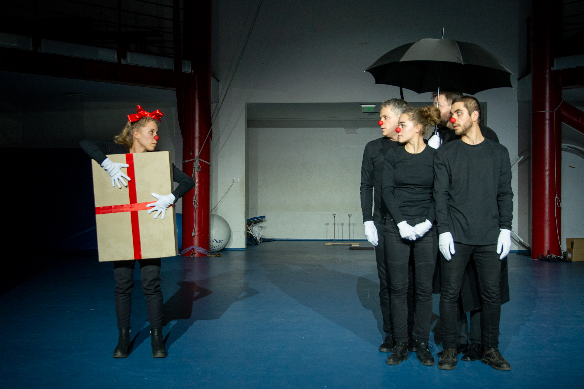 Az iskola bohóc osztálya Esik című pályázati anyagát mutatta be, melyhez a zenei aláfestést Turiák Tibor, az iskola zenetanára szolgáltatta, a koreográfus Hus Sándor volt, a felkészítő tanárok pedig Méhes Csaba és Greifenstein János voltak. A pantomim elemekkel tűzdelt és a Chaplin filmeket idéző mókás jelenetek azt mutatták be, hogyan hozza össze az idegeneket a hirtelen támadt eső.