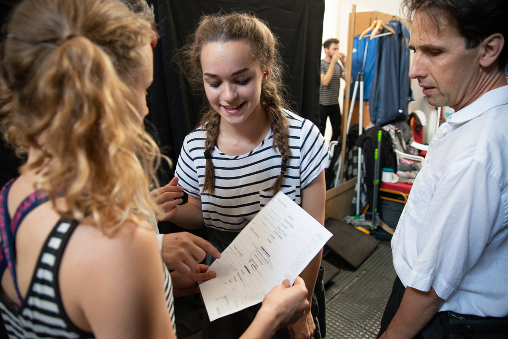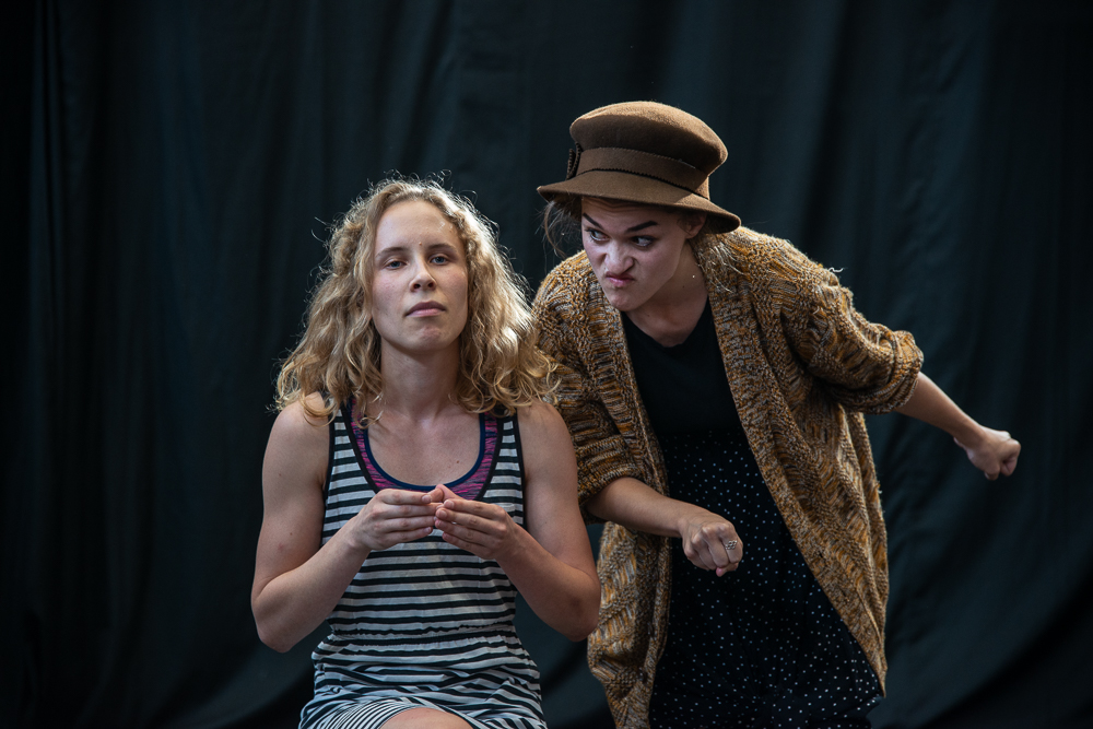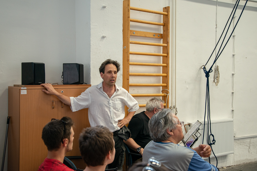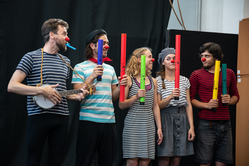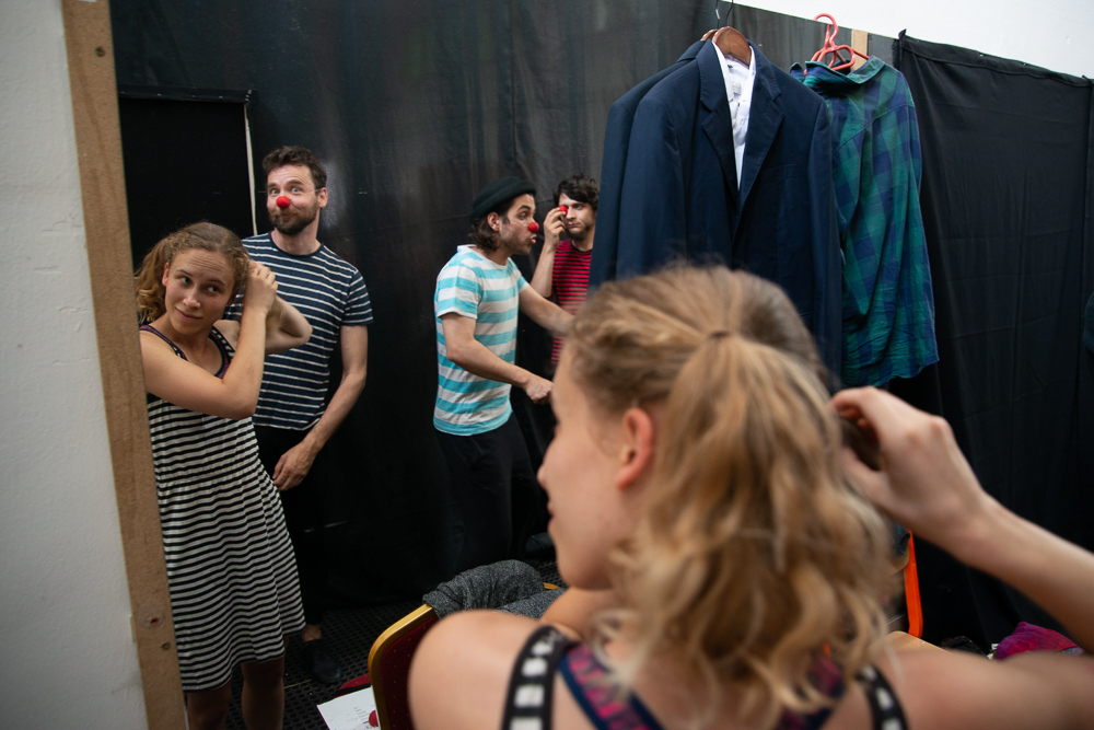 Az előadás második blokkja karakterváló pantomim szólókat tartalmazott, vagyis egyszemélyben jelenítettek meg különböző, teljesen ellentétes, erős karaktereket. Amíg a tanulók a színfalak mögött szusszantak egyet, Méhes Csaba elmondta, hogy a diákok pantomimet, színészmesterséget, színpadi mozgást, táncot, bohóctechnikát és zenét tanulnak, valamint artista alapképzésben is részesülnek. Greifenstein János hozzátette, hogy a második évre komisch és excenter számokat is létre szeretnének hozni, amik egyszerre vegyítik a clown és az artisztikai elemeket.