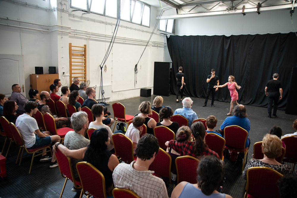 A szép számban összegyűlt közönséget Greifenstein János köszöntötte, aki elmondta, hogy amit látni fogunk, az a tanév néhány kiválasztott gyakorlata: „A nyitány után duetteket láthatunk, amelyek legfontosabb szempontja az volt, hogy a karaktereket hogyan lehet egymás mellé betenni, hogy tudnak egymás mellett dolgozni vicces dramaturgiával. Ezek egytől egyig saját gyártmányú szkeccsek, ugyanis szeptembertől nem azzal foglalkoztunk, hogy felállítsunk már létező produkciókat, hanem hogy teljesen újakat hozzunk létre.”