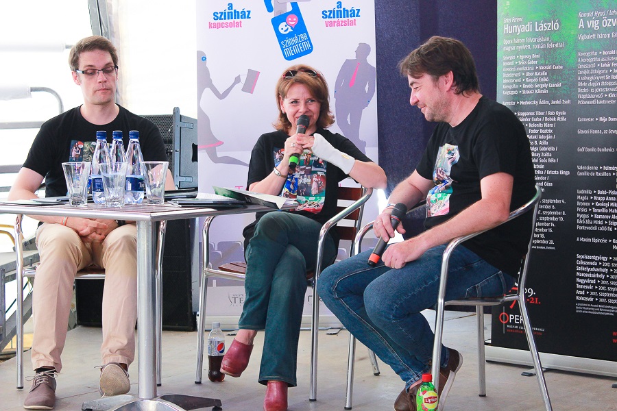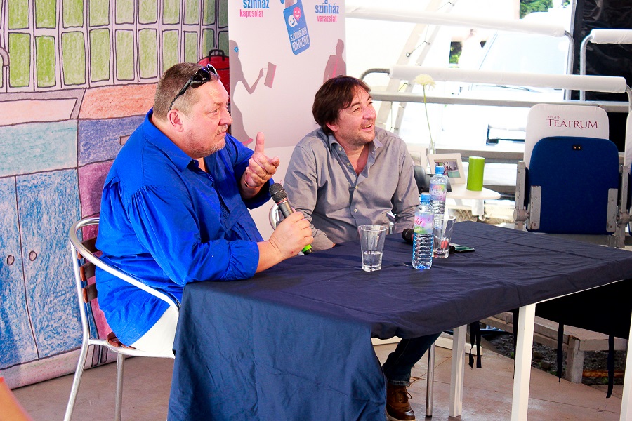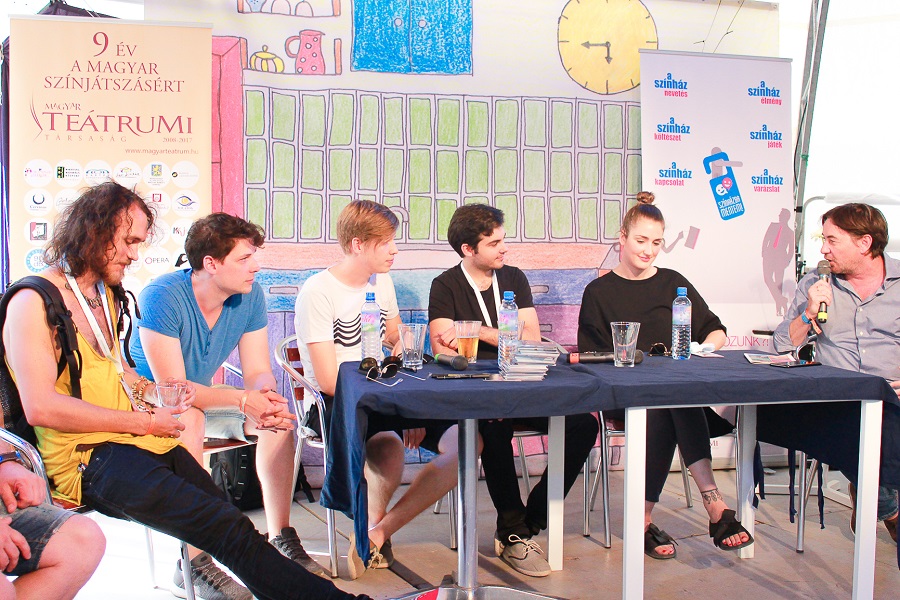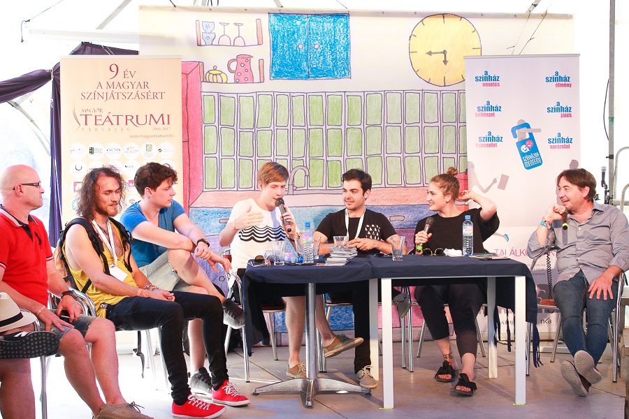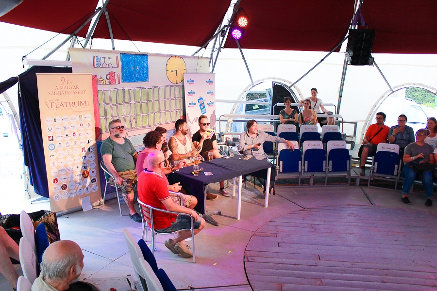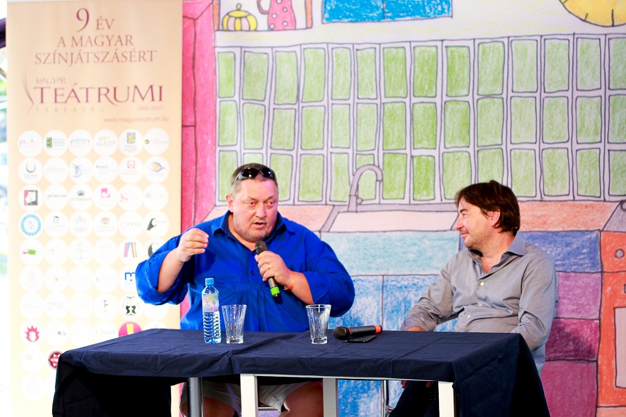 A délután a Magyar Teátrumi Társaság beszélgetésével kezdődött. Vidnyánszky Attilát, a Nemzeti Színház igazgatóját Szabó László, a Társaság titkára kérdezte a hamarosan lejáró igazgatói ciklusának mérlegéről. Vidnyánszky Attila válaszában kiemelte, legfőbb célja az volt, hogy programjával meghaladja a múltban kialakult szakadékokat: Budapest – vidék, belföld – külhon, saját produkciók – befogadó színház. Több kiemelkedő, előremutató színházi projekt indult az elmúlt időszakban. Létrejött a MITEM, ami mára az ország legjelentősebb és legrangosabb színházi találkozója lett, melynek során sokat fejlődtek a nemzetközi kapcsolatok is. Bár saját iskolája nincs a Nemzetinek, de a teátrum a kaposvári színészképzés gyakorlóhelyévé vált, valamint ugyanezen törekvés mentén spanyol rendezők tartottak egy kurzust Budapesten. Kiemelkedő eredményként említette az igazgató, hogy az elmúlt évadban pusztán egy hét volt, amikor a nézőszám 90% alatt lett volna, egyébként folyamatosan telt házzal mentek az előadások.