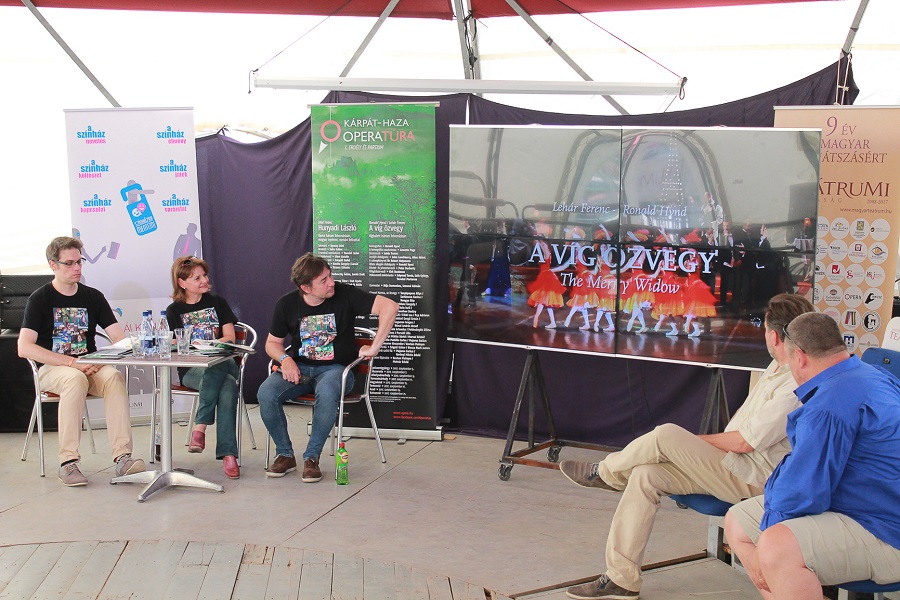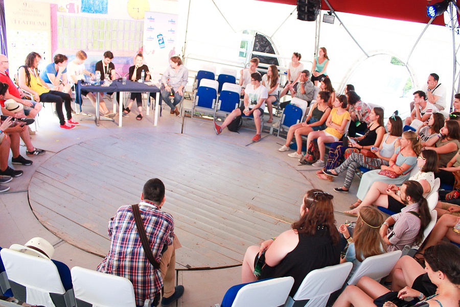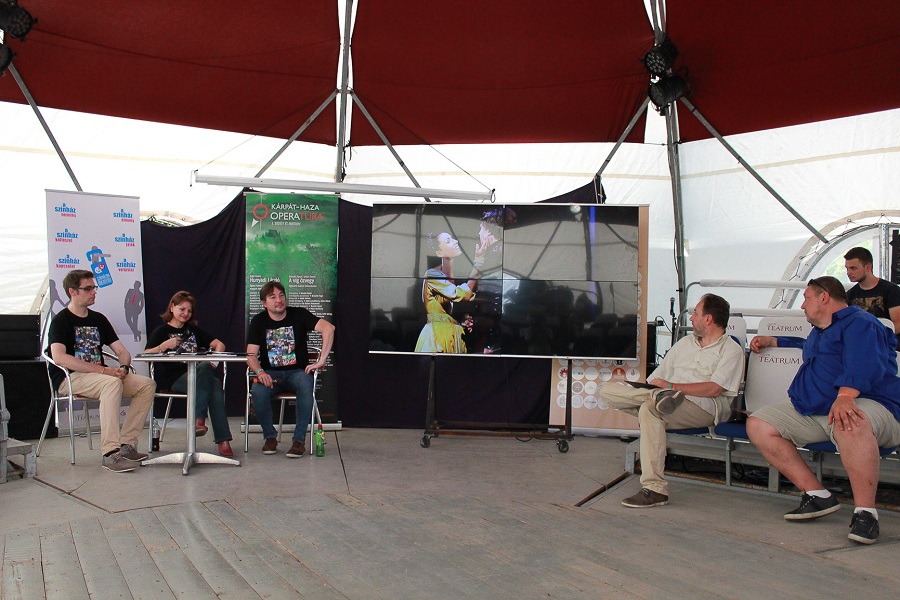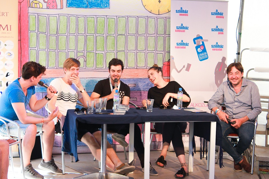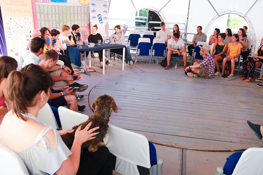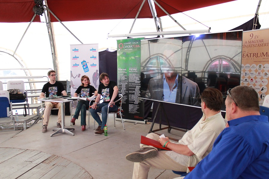 A délután a Magyar Teátrumi Társaság beszélgetésével kezdődött. Vidnyánszky Attilát, a Nemzeti Színház igazgatóját Szabó László, a Társaság titkára kérdezte a hamarosan lejáró igazgatói ciklusának mérlegéről. Vidnyánszky Attila válaszában kiemelte, legfőbb célja az volt, hogy programjával meghaladja a múltban kialakult szakadékokat: Budapest – vidék, belföld – külhon, saját produkciók – befogadó színház. Több kiemelkedő, előremutató színházi projekt indult az elmúlt időszakban. Létrejött a MITEM, ami mára az ország legjelentősebb és legrangosabb színházi találkozója lett, melynek során sokat fejlődtek a nemzetközi kapcsolatok is. Bár saját iskolája nincs a Nemzetinek, de a teátrum a kaposvári színészképzés gyakorlóhelyévé vált, valamint ugyanezen törekvés mentén spanyol rendezők tartottak egy kurzust Budapesten. Kiemelkedő eredményként említette az igazgató, hogy az elmúlt évadban pusztán egy hét volt, amikor a nézőszám 90% alatt lett volna, egyébként folyamatosan telt házzal mentek az előadások.