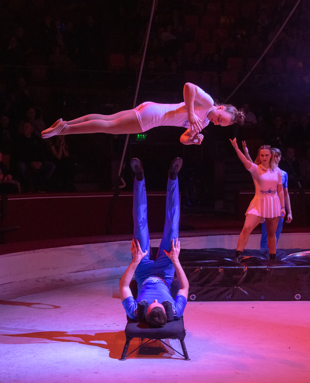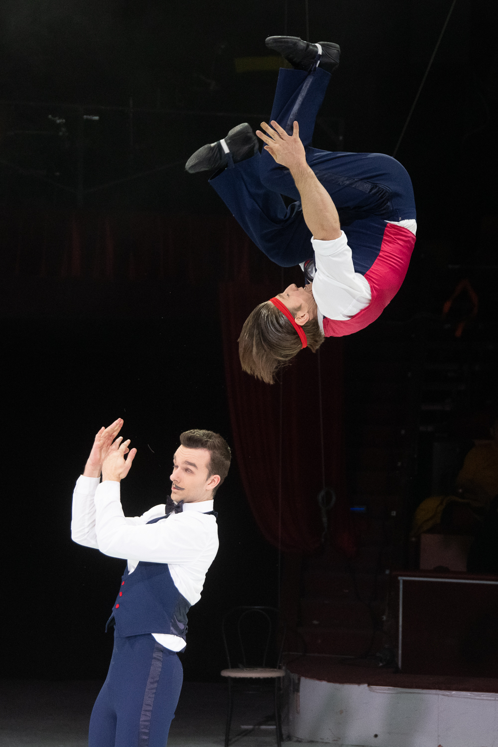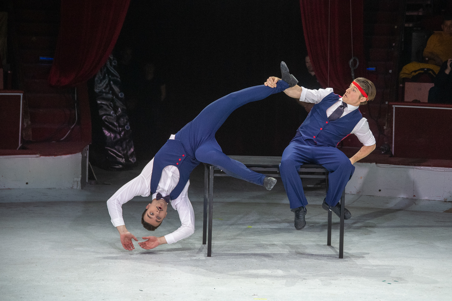 A szünet után a többszörös cirkuszfesztivál-díjas High5 – Fülemen Tamás, Lukácsa Petra, Bényei Marcell – lendületes gumiasztal állósitz számában egy hajós utazást idézett meg az 1930-as évekből, amiben két hordár versenyez az utazó kisasszony figyelméért. A gumiasztal és állósitz rekvizitek keverékéből létrejött kellék leszereléséről a Tadamm bohóc csoport entreé száma terelte el a figyelmet, majd a híres cirkuszi dinasztia tagjai, az Eötvös Testvérek – Eötvös Lorien és Eötvös Larissza – mutatták be ifjú korukat meghazudtoló ügyességgel előadott levegő karika produkciójukat.