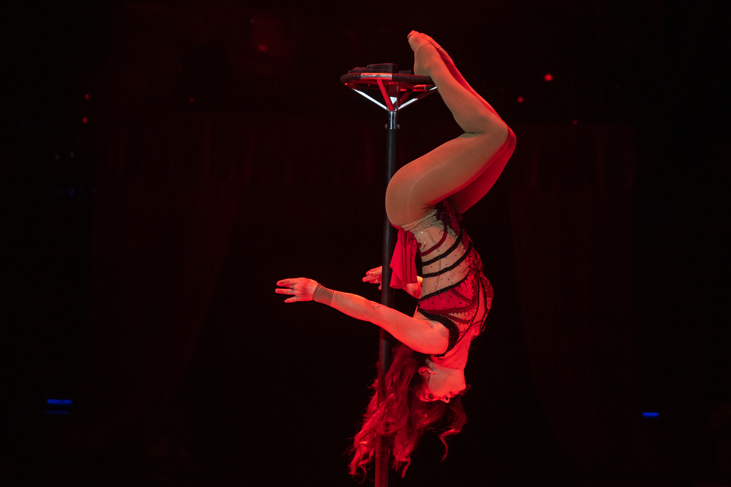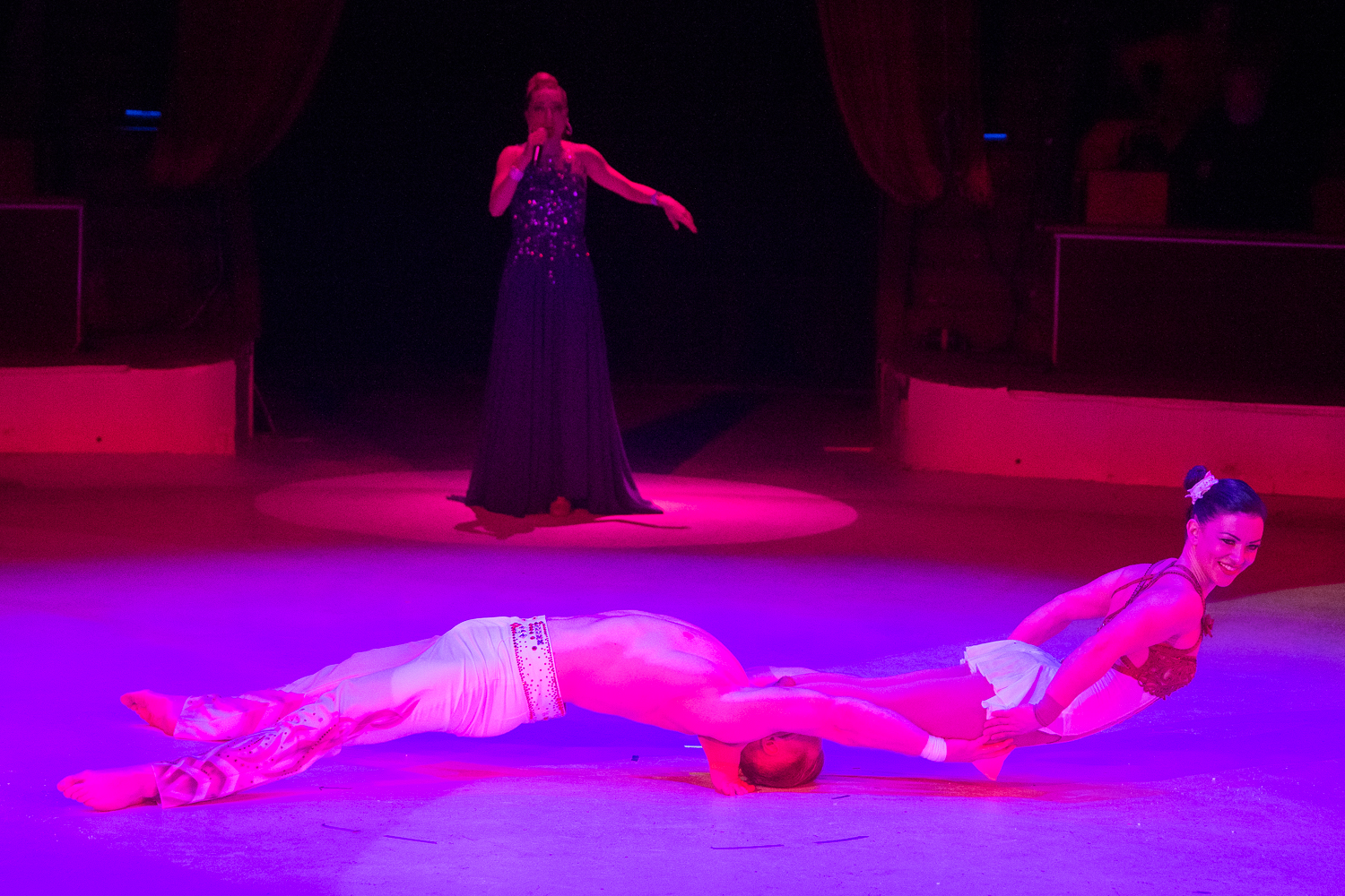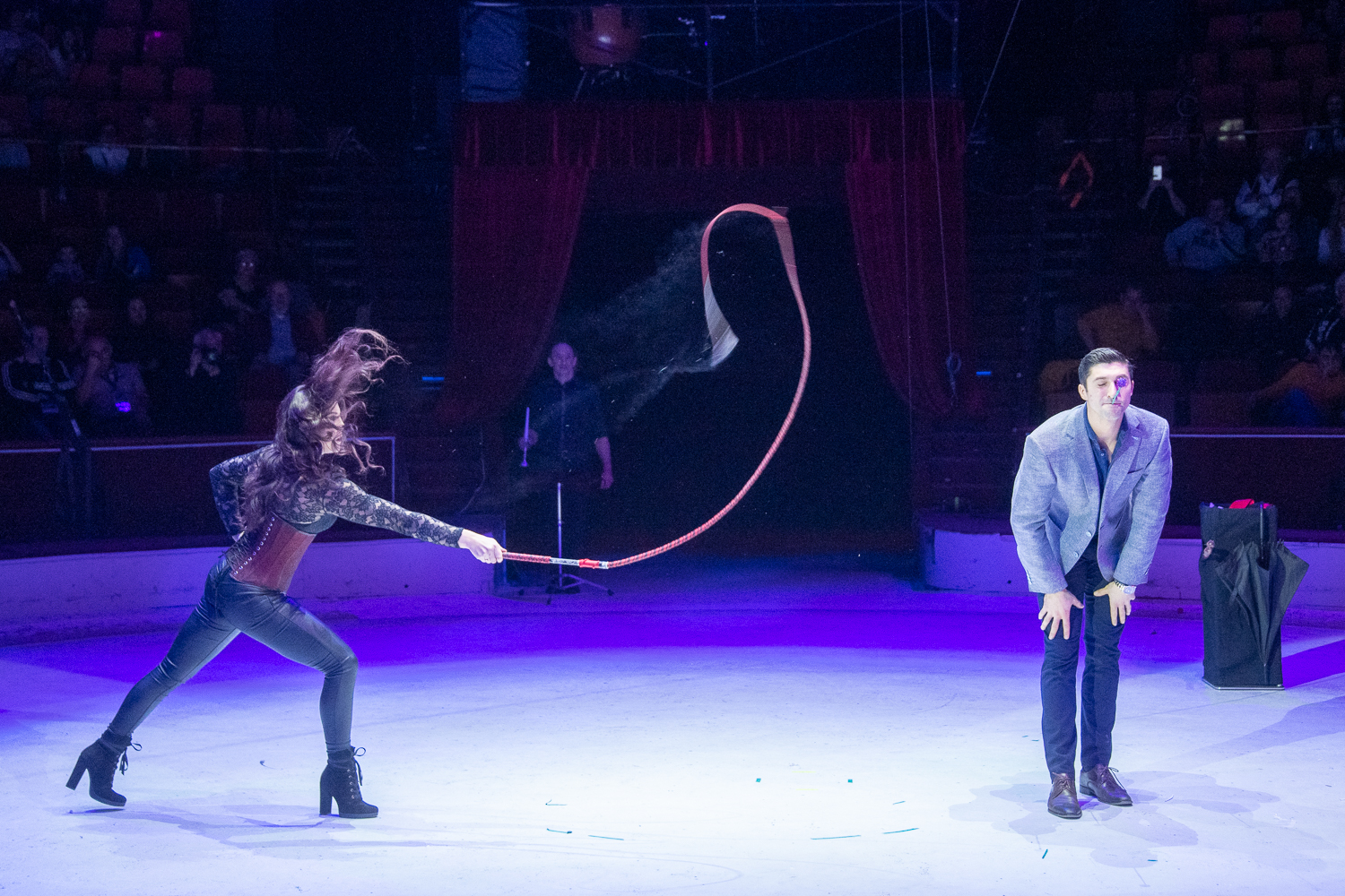 A Tadamm csoport tréfái után egy manapság ritkán látott, látványos ostorszám következett, a Baross Imre Artistaképző Intézetben 2014-ben végzett Varga Angelikától, aki egyéniségét ebben az igazán érzéki számban találta meg, amit párjával, a zsonglőr Nereus Lajossal dolgozott ki.