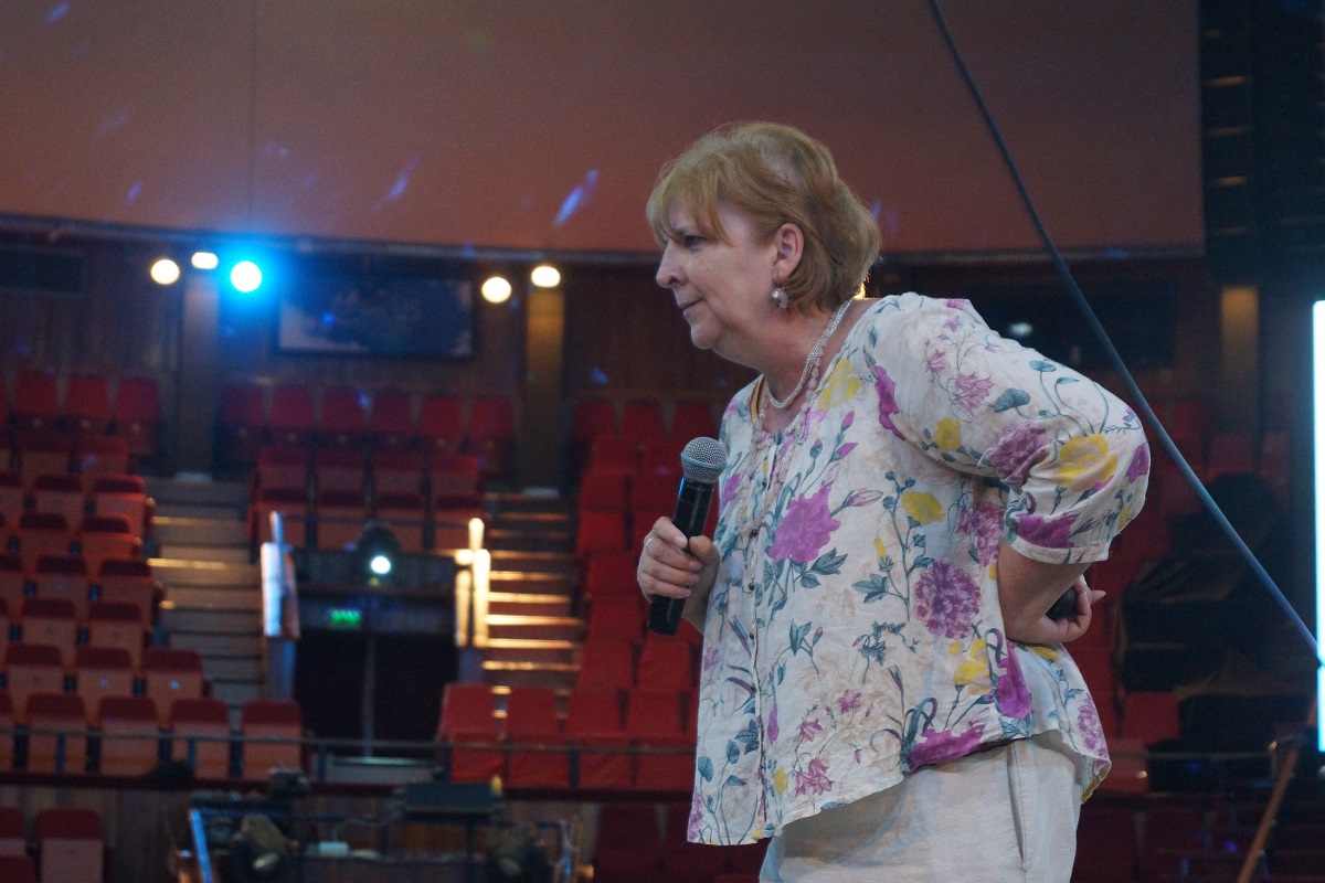 Kardos Kata, a Fővárosi Nagycirkusz cirkuszpedagógiai koordinátora vezette fel a rendhagyó óra tananyagát a vidékről érkezett negyedik osztályos tanulóknak, majd Boldizsár Gizi nagy lelkesedéssel belekezdett a kivetítőn megjelenő fotókkal, képekkel és táblázatokkal illusztrált előadásába, amelynek témája a víz sokrétű szerepe volt. A nebulók megtudták, hogy miért nélkülözhetetlen az élőlények számára a víz, megismerkedtek a tenger élőlényeivel a legkisebbektől a legnagyobbakig: rájákkal, lábasfejűekkel, csikóhalakkal, tengeri uborkákkal, polipokkal, rákokkal, cápákkal, kék bálnákkal – akik egyszerre több úszómedencényi vizet szippantanak be, hogy sziláikkal kiszűrjék táplálékukat, a tenger legkisebb élőlényeit, a planktonokat –, de az is kiderült, hogy miért úsznak rajokban a kisebb halak.