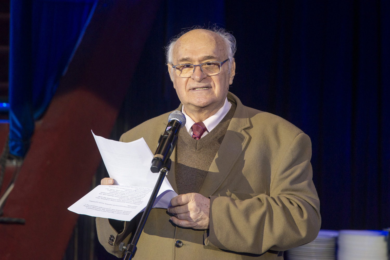 Az idén elhunyt szakszervezeti kollégák emlékére egy perces néma csenddel adóztak, majd Eötvös Tibor virággal köszöntötte az idén 90. életévükbe lépett művészeket.