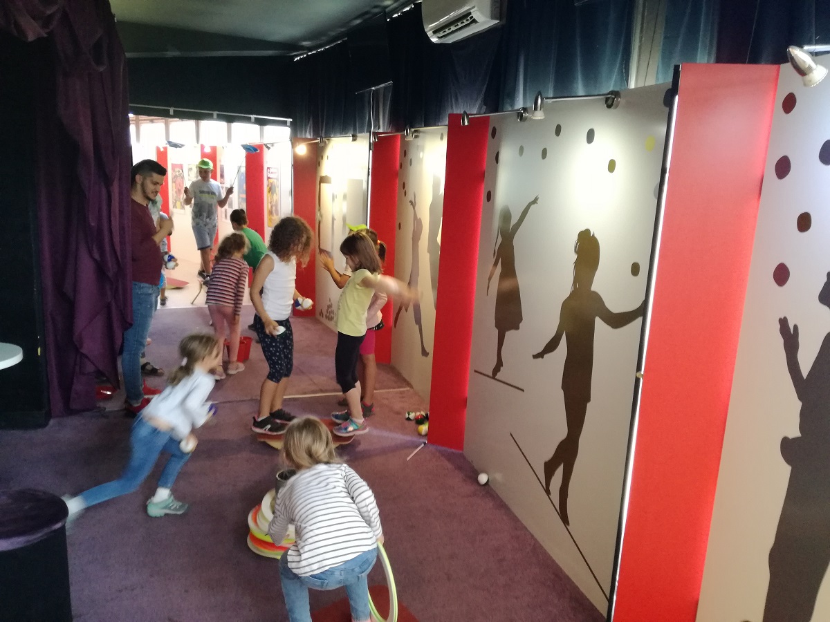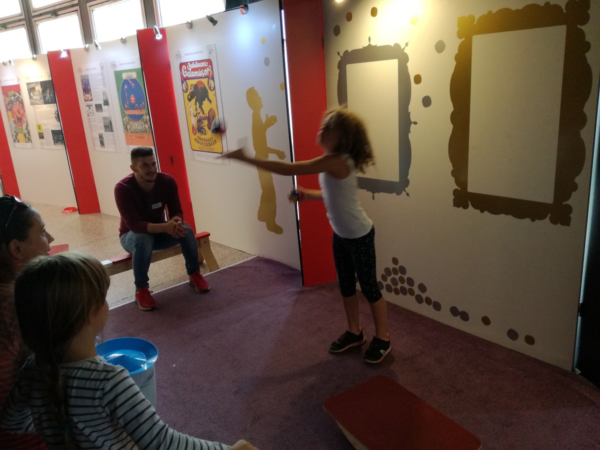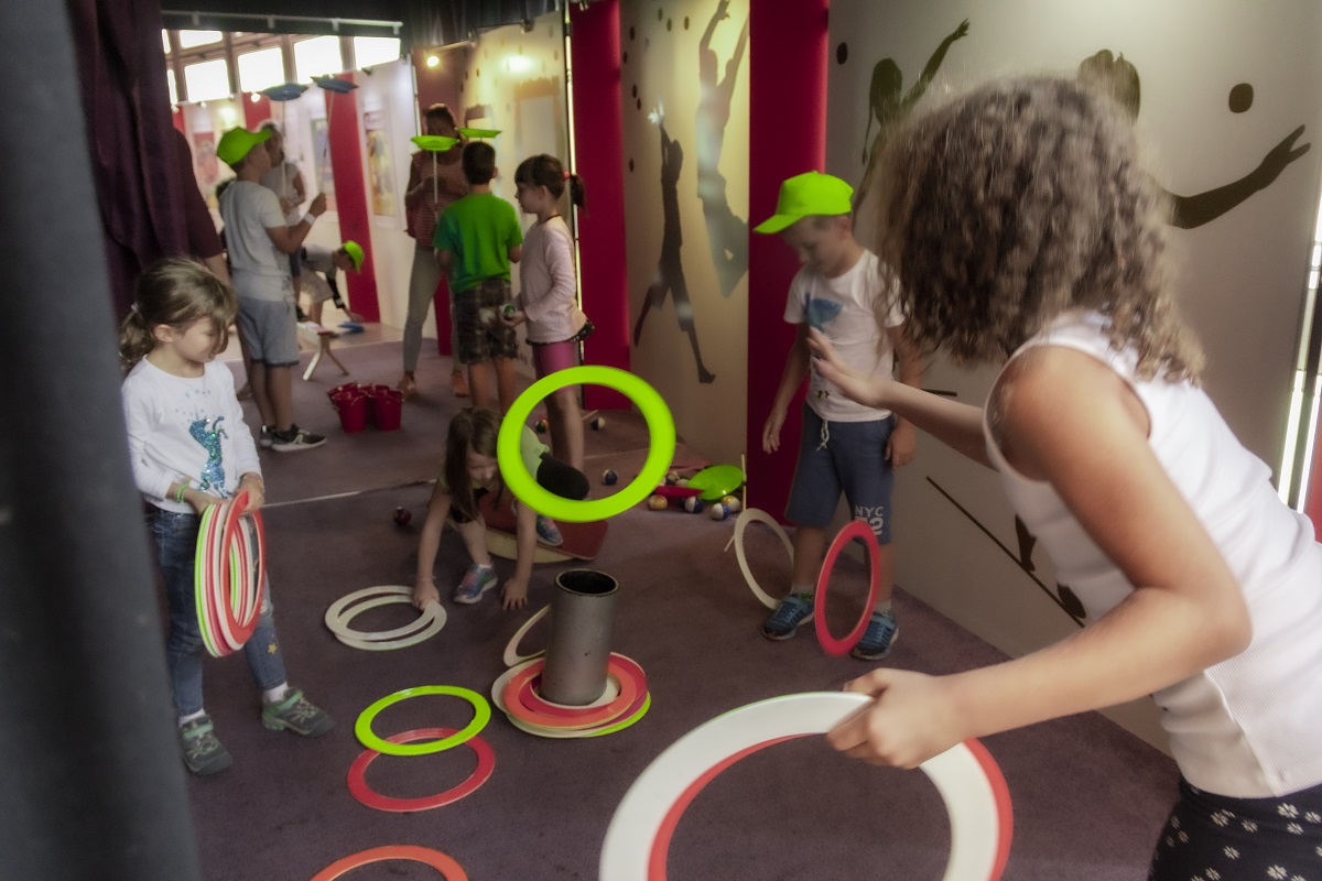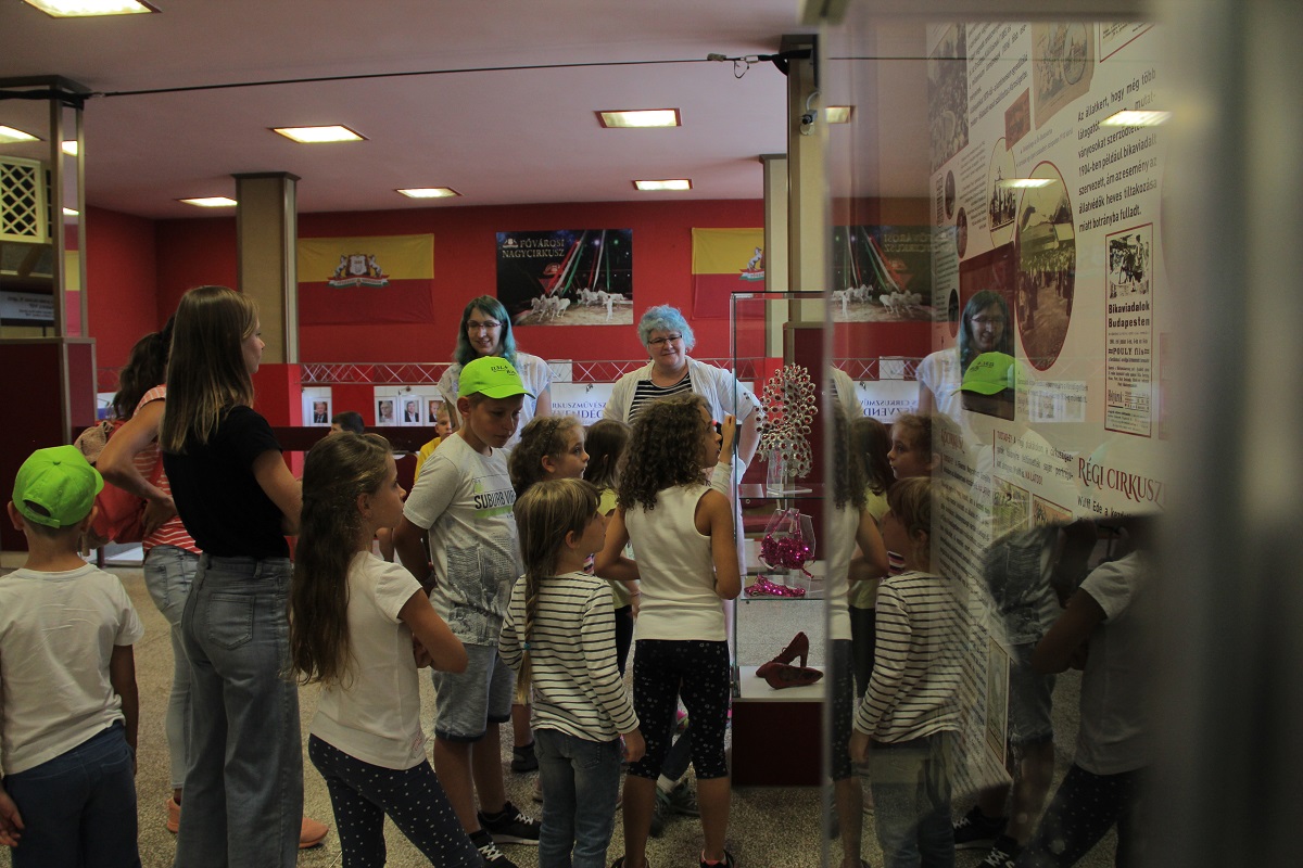 A kiállítás kurátora, Szonday Szandra és rendezője, Joó Emese játékos rekvizitkeresést tartottak a kiállításban, ahol a gyerekek rátalálhattak az elefánt kenőkésére, az erőművész derékövére, a zsonglőr hegedűire, az egykerekűre és egy flitteres bikinire. A gyerekek a sokféle kiállítási tárgyon keresztül megismerkedtek a cirkusz világával. Ezután Csürke Tibor artista segítségével kipróbálhatták ügyességüket, egyensúlyérzéküket és labdaérzéküket – kis produkcióikat egymásnak is bemutatták.