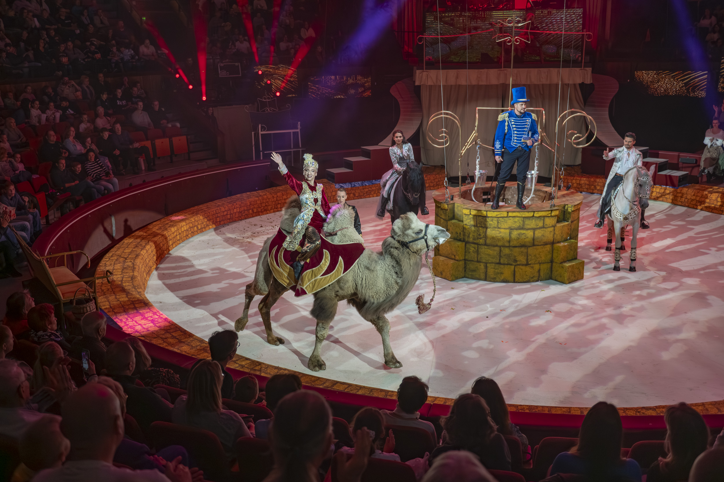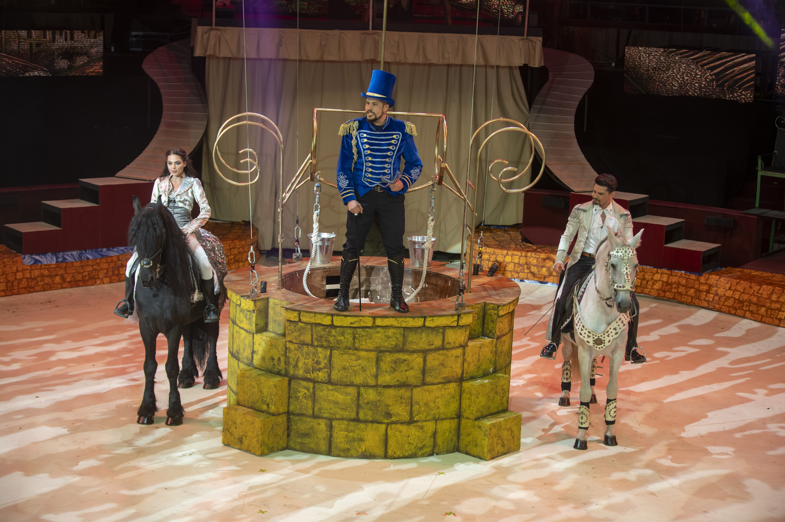 A főbb szerepeket brazil és orosz artistalány, valamint három magyar bohóc játssza, porondra lépnek még kínai, üzbég, német, magyar, orosz és ukrán cirkuszművészek, lovak, falusi és egzotikus állatok is. Csodás kalandok, szemkápráztató jelenetek, Jászai Mari- és Kossuth-díjas színészek által előadott, szívbe markolóan szép dalok várnak rád!