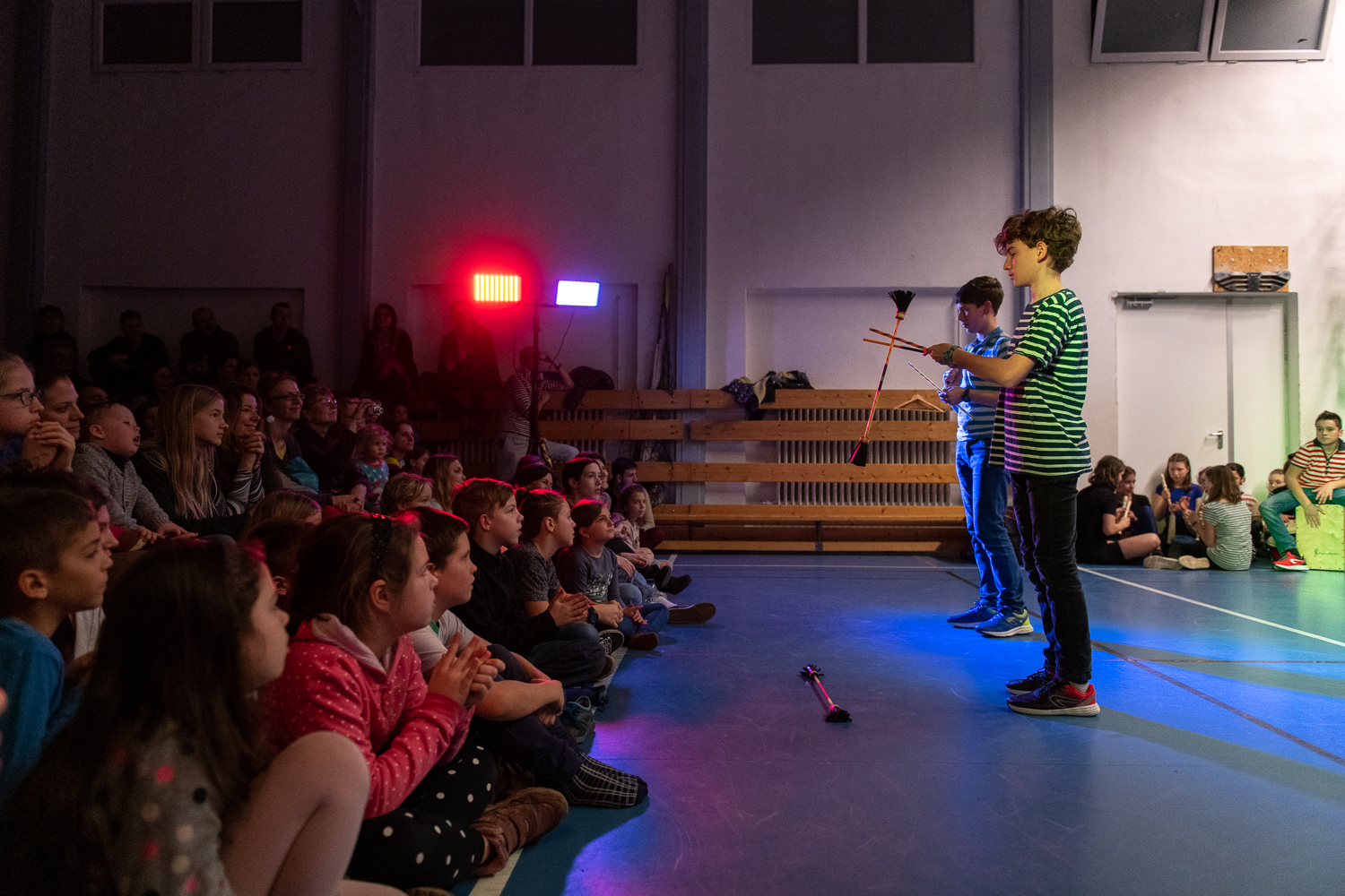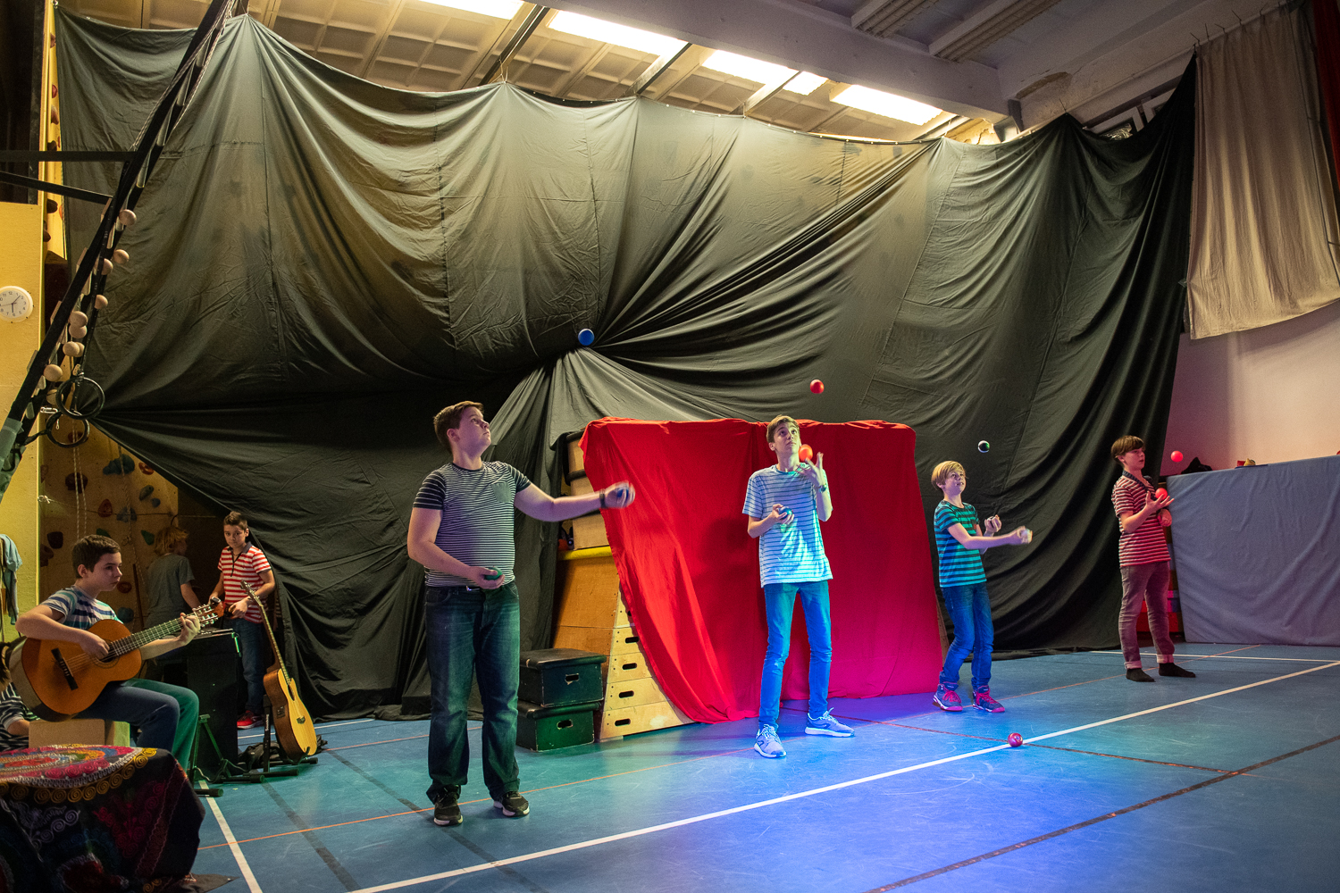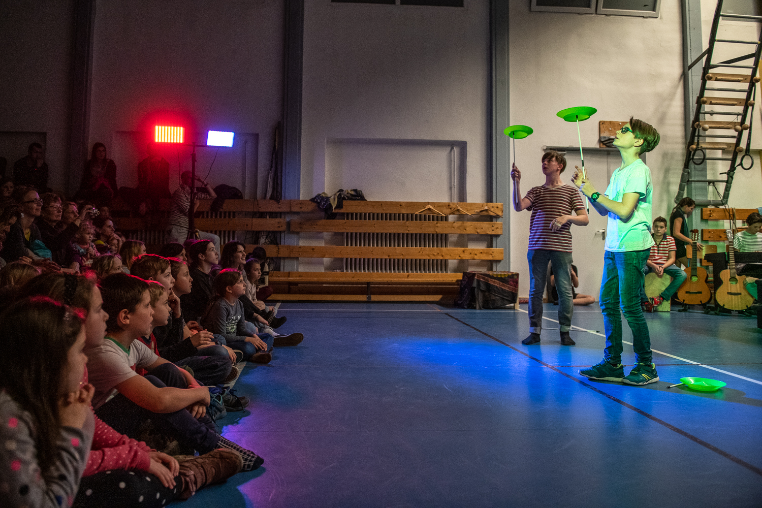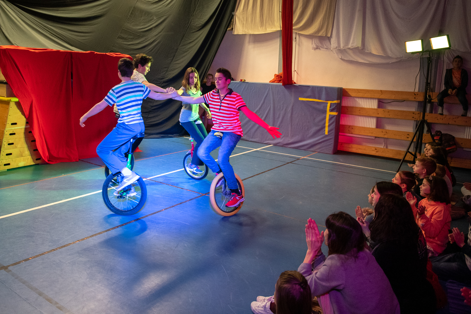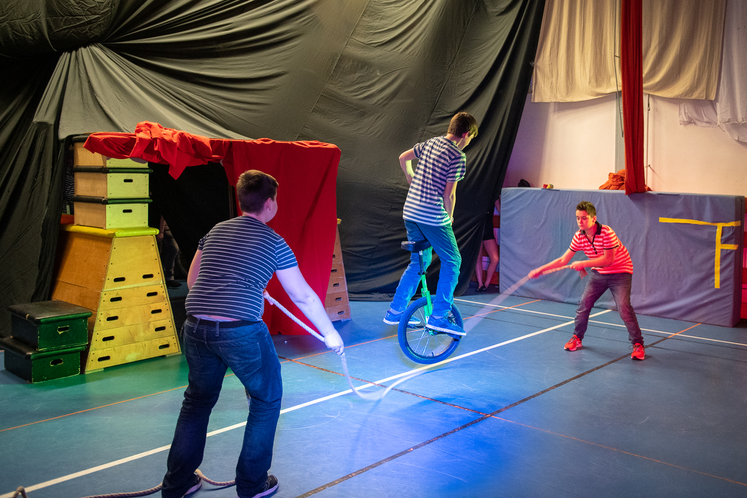 Nagy a jövés-menés az Óbudai Waldorf Iskola tornatermében, az izgatott diákok nagy elánnal készülnek az esti bemutatóra. Még egy utolsó próba a cirkuszi rekvizitekkel, apró technikai megbeszélések, majd miután zsúfolásig megtelik a tornaterem, egy teljesen más világba, a cirkuszművészet csillogó világába csöppenünk. Csupa ellentét, humoros párbeszédek és kiszólások, élő zene, valamint megannyi cirkuszi zsáner. Zsonglőrködés labdákkal és buzogányokkal, csoportos diaboló szám, ördögbot, páros emelőszám, gúlaszám, egykerekű bicikliszám, konferanszié, bűvész, illuzionista, tányérpörgetés, talajakrobatika, rolla bolla, tissue. Akár egy cirkuszban!